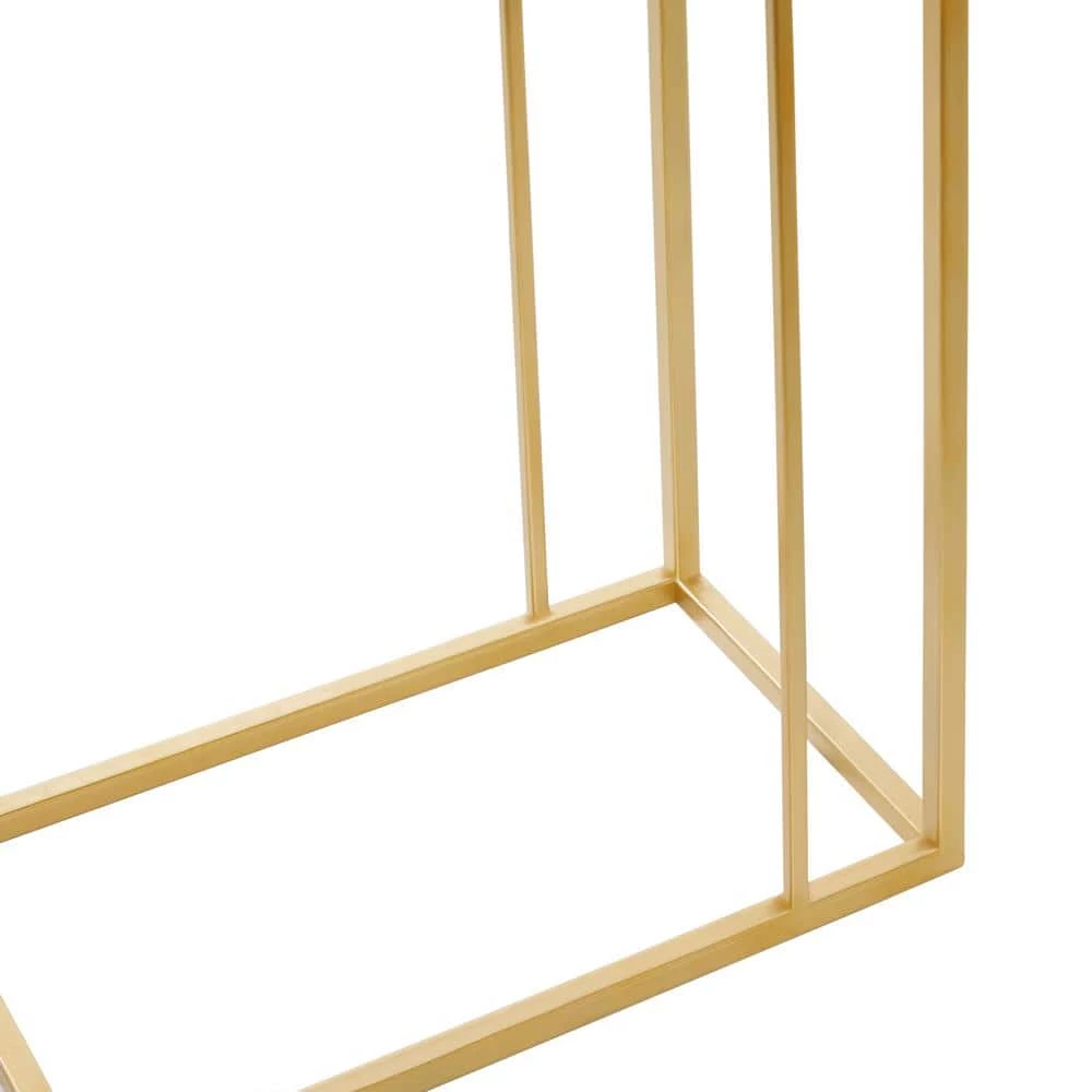 - This elegant home decor features a C-shaped side table that’s designed with a clear glass body and a set of open style iron legs