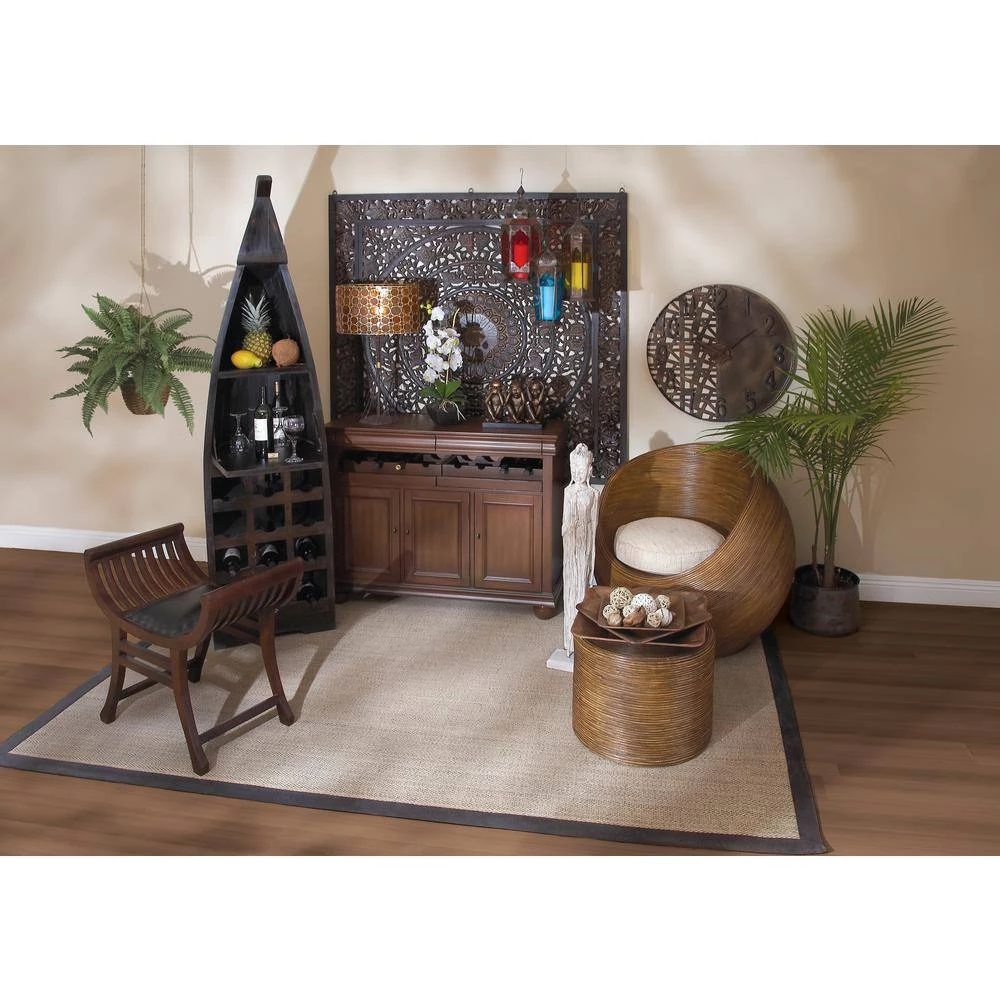 Display your wine bottles with style and make everyone thirsty with envy. Looks stylish in your living room or kitchen as a way to display and serve your favorite wines. This wine rack is best displayed inside beach-themed living rooms, home offices, kitchens, and dining areas next to indoor plants in tinted glass planters and jute rope accented decorations. This item comes shipped in one carton. Suitable for indoor use only. Made in Indonesia. This item can hold 12 wine bottles. Coastal design.