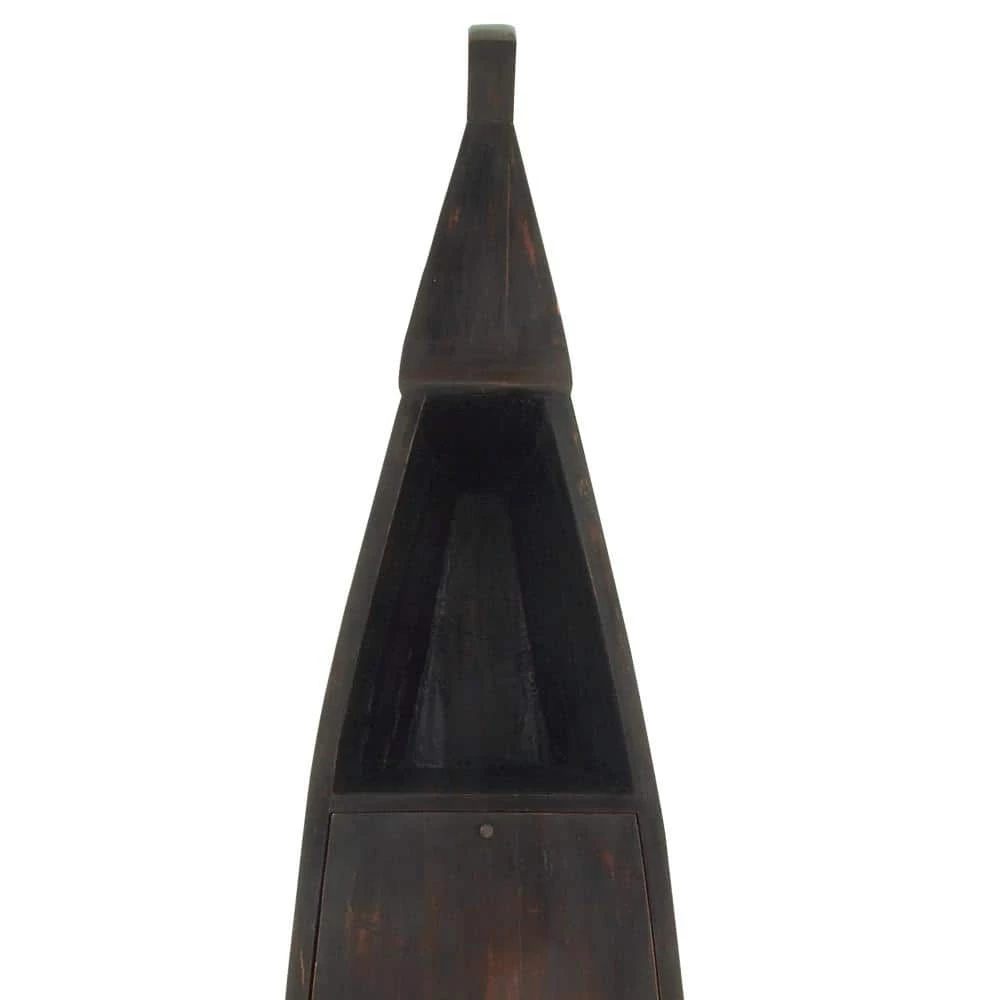 - A boat-shaped wine cabinet with a vertical orientation and a polished dark wood finish