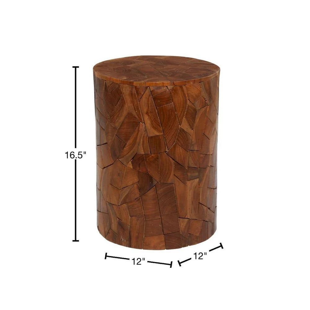 Bring a finishing touch to your home with an inviting appeal with this beautifully crafted accent table. A compact friendly table providing you with additional surface storage space any where in your home. Due to the handmade nature of this item, no two products will be alike. There will be slight differences in pattern, size, and color. This item ships in 1 carton. The one-of-a-kind item you have purchased is made from the stumps and unused trunks of harvested teak trees. This teak comes from ecologically managed forests. Once the tree is harvested, the remaining stumps must be removed to make space to plant replacement trees. In the past, these pieces would be harvested and then burned to dispose of them, which created pollution. Today we use these tree stumps and trunks to create beautiful, handcrafted pieces for your home. Coloring, cracks, and shapes will vary between items. Each one is unique and the artisan works to bring out the inner beauty within the tree to become a cherished piece of art for your home. . Suitable for indoor use only. Maximum weight limit is 50 lbs.. Made in Indonesia. Contemporary design.