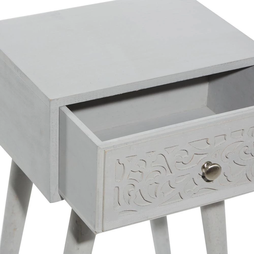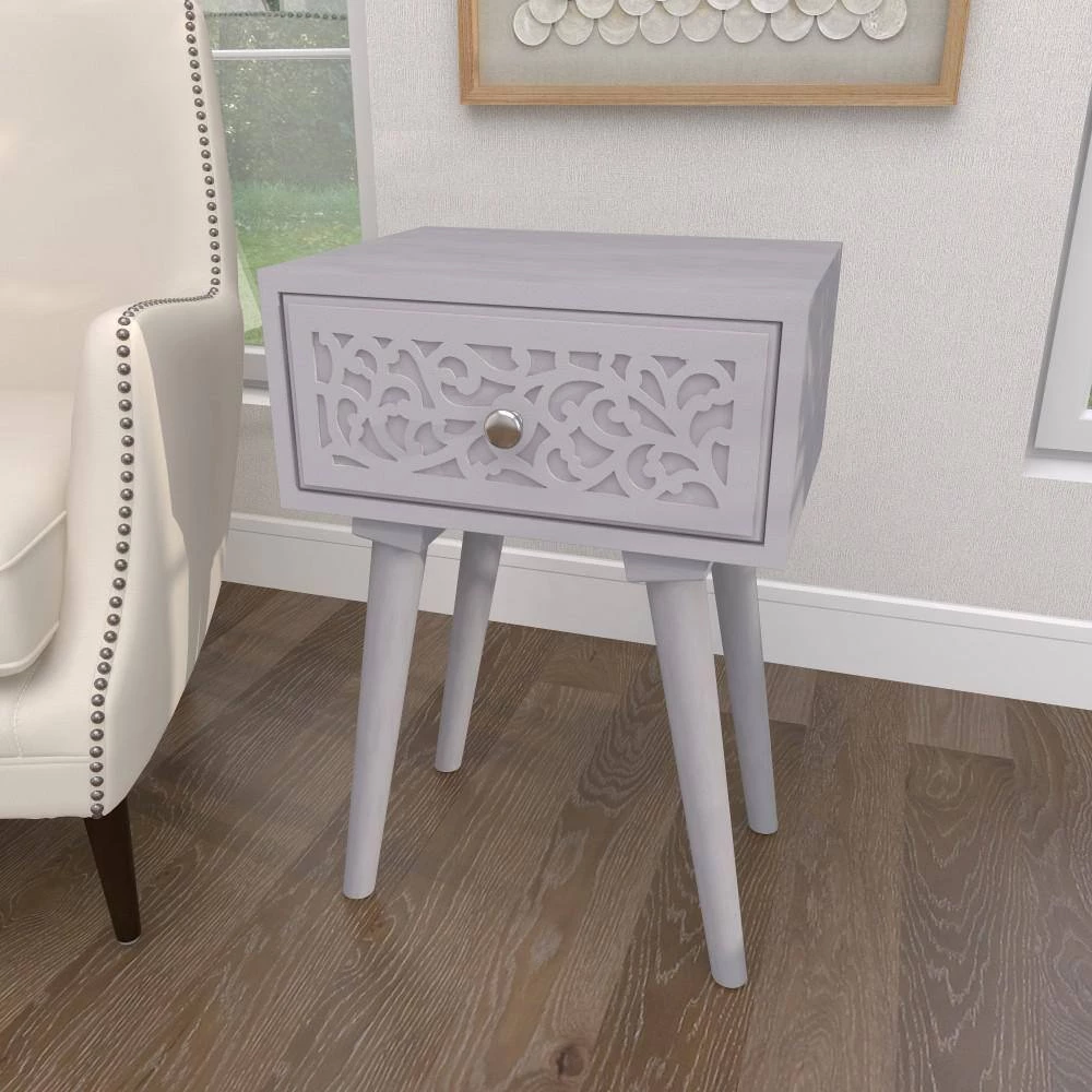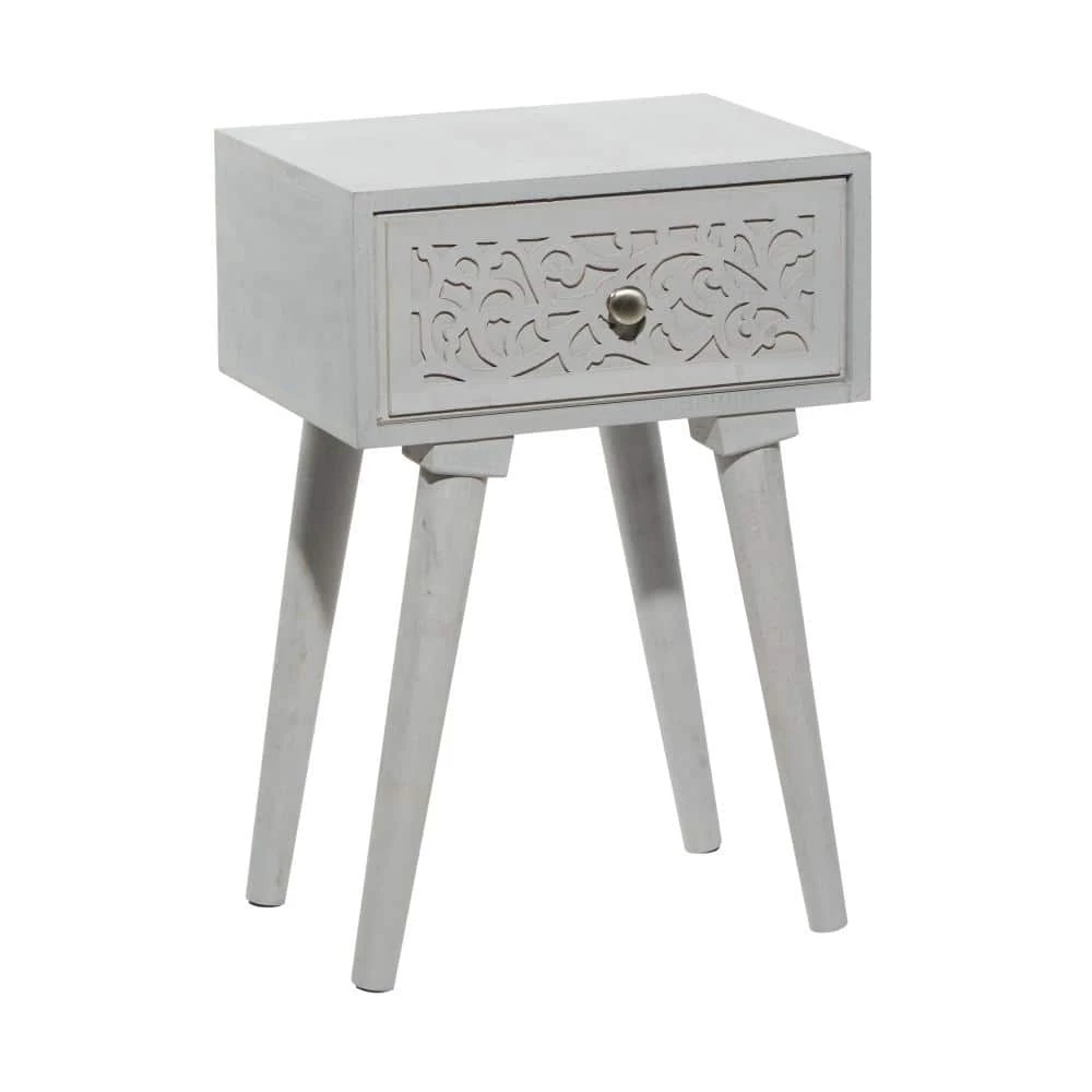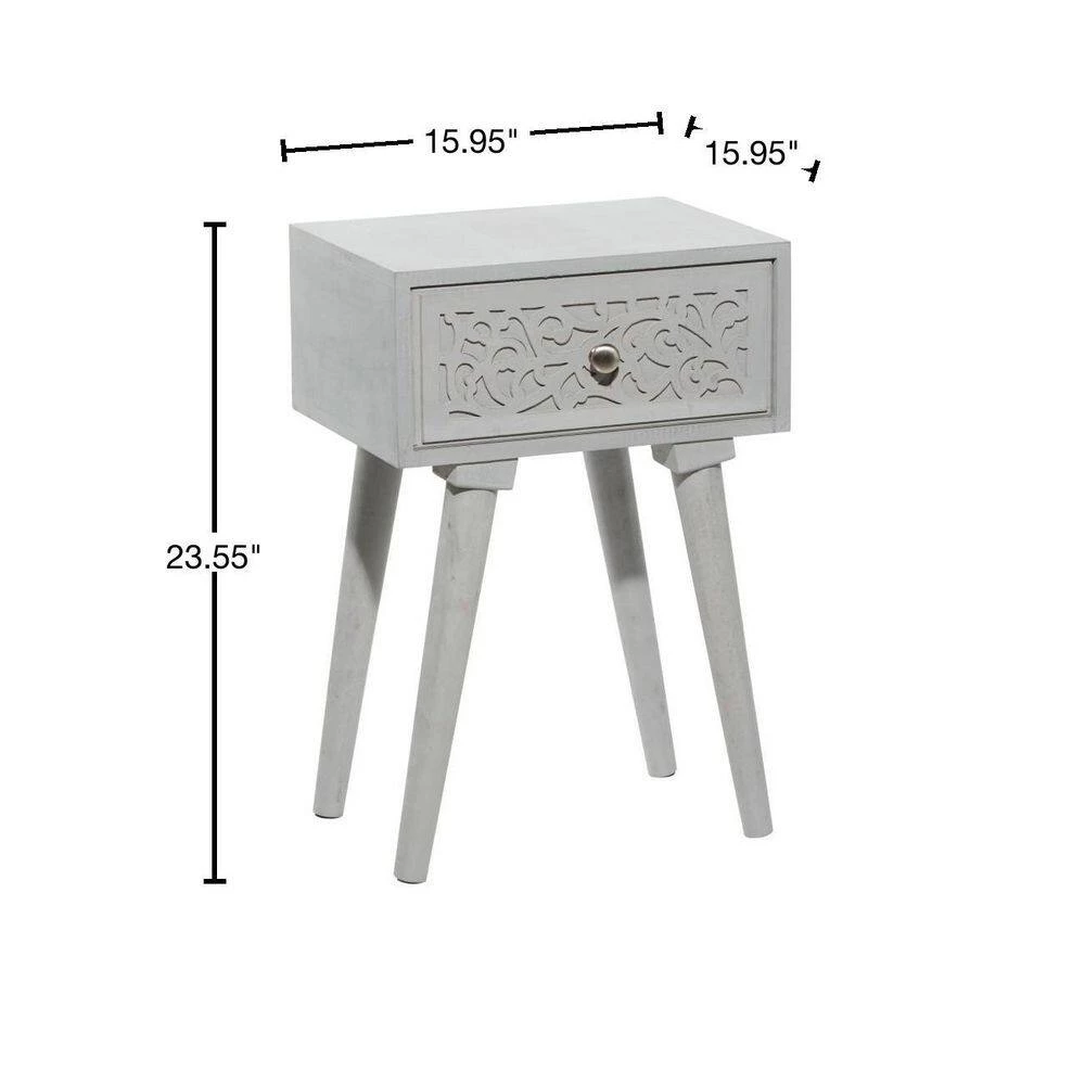 Bring a finishing touch to your home with an inviting appeal with this beautifully crafted accent table. A compact friendly table providing you with additional surface storage space any where in your home. Display these carved wooden end tables near your upholstered sofa or bed for a hint of rustic charm. This item ships in 1 carton. Nesting tables can be used together or separate. Due to the handmade nature of this item, no two will be alike, there will be slight differences in shape, size, and color. Suitable for indoor use only. Each accent table can support up to 50 lbs. Made in India. Wood carved tables come as a set of 2. Eclectic style.