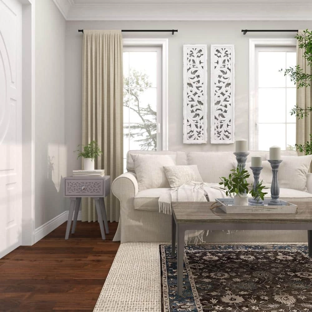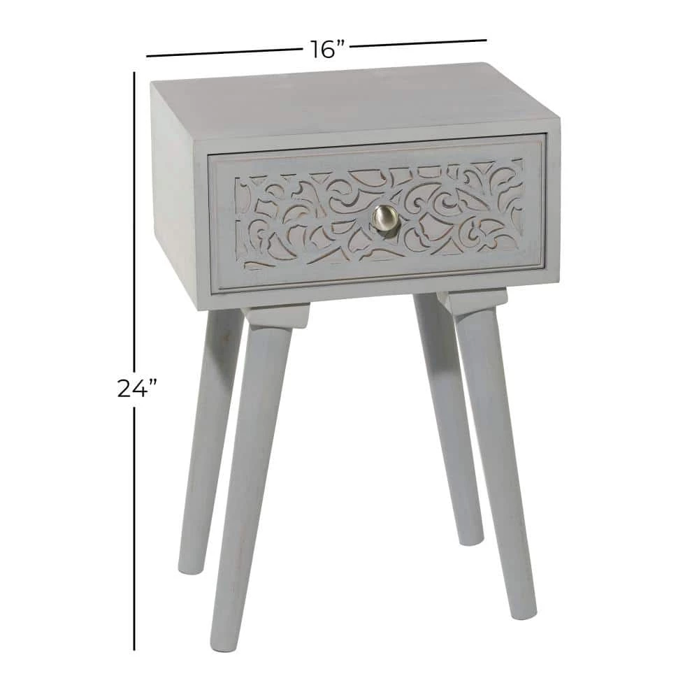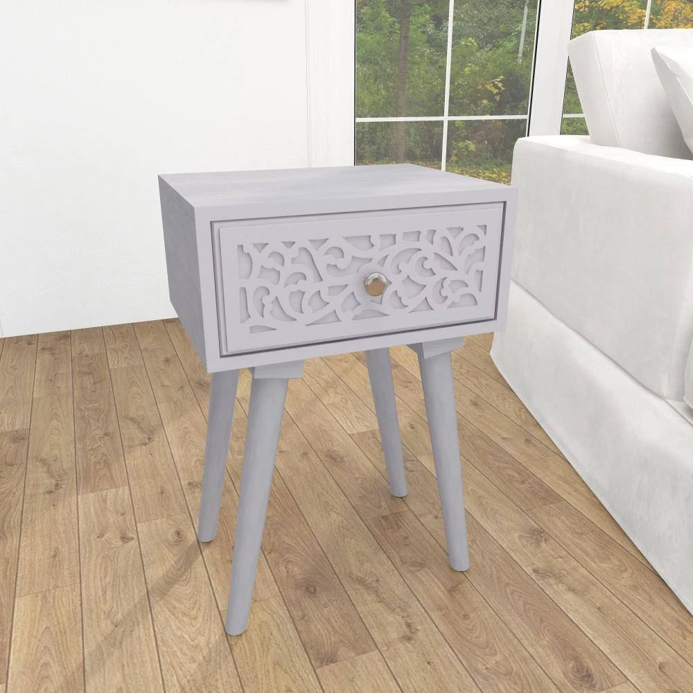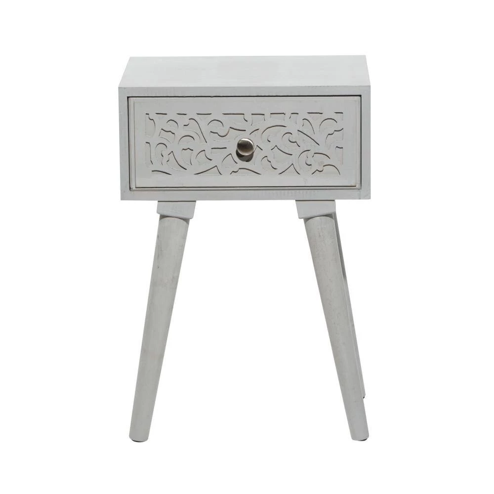 Bring a finishing touch to your home with an inviting appeal with this beautifully crafted accent table. A compact friendly table providing you with additional surface storage space any where in your home. Display these carved wooden end tables near your upholstered sofa or bed for a hint of rustic charm. This item ships in 1 carton. Nesting tables can be used together or separate. Due to the handmade nature of this item, no two will be alike, there will be slight differences in shape, size, and color. Suitable for indoor use only. Each accent table can support up to 50 lbs. Made in India. Wood carved tables come as a set of 2. Eclectic style.