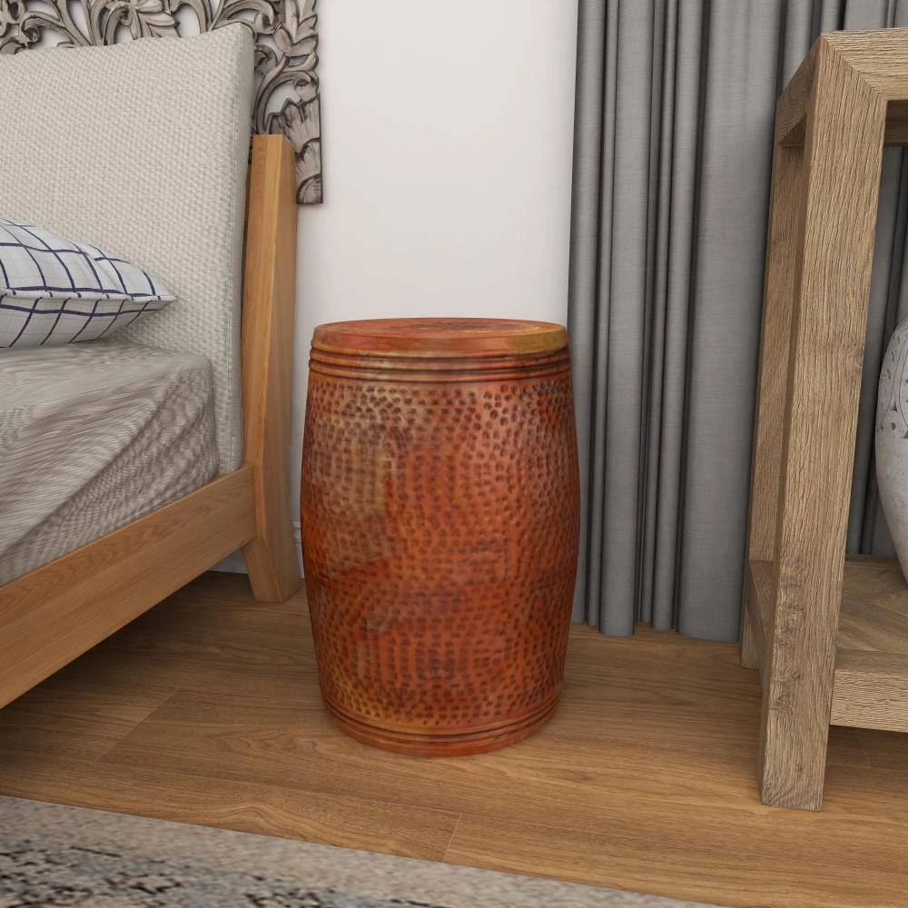 Bring a finishing touch to your home with an inviting appeal with this beautifully crafted accent table. A compact friendly table providing you with additional surface storage space any where in your home. Metal copper accent table are best displayed near upholstered sofa or platform beds with potted plants and small decorative objects. This item ships in 1 carton. Features hammered metal and rainbow patina finish. Suitable for indoor use only. Max weight limit: 100 lbs.. Made in India. Vintage theme.