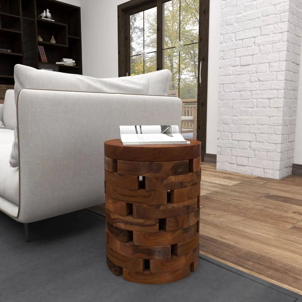 - Brick style teak wood accent table features a rugged design with natural wood patterns with a live edge inspired look