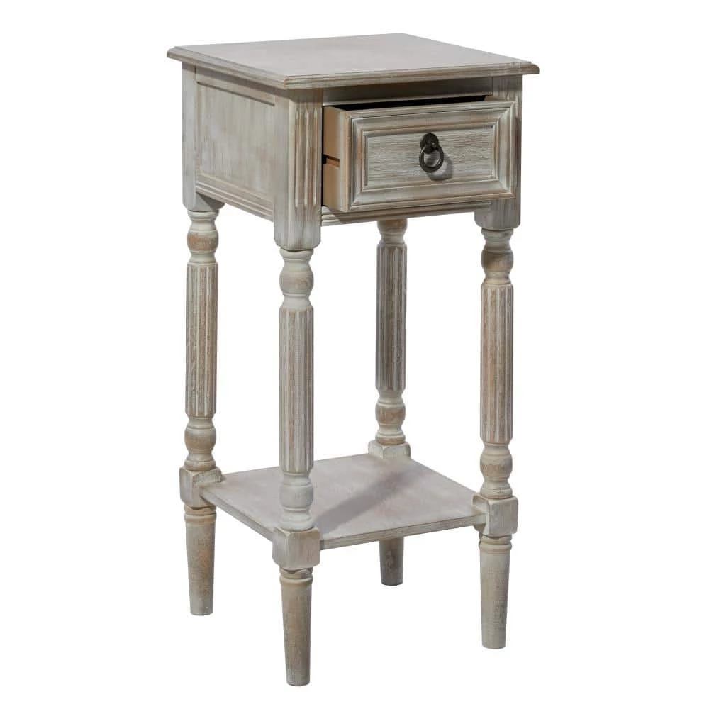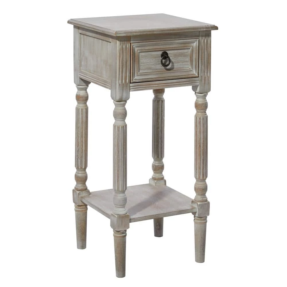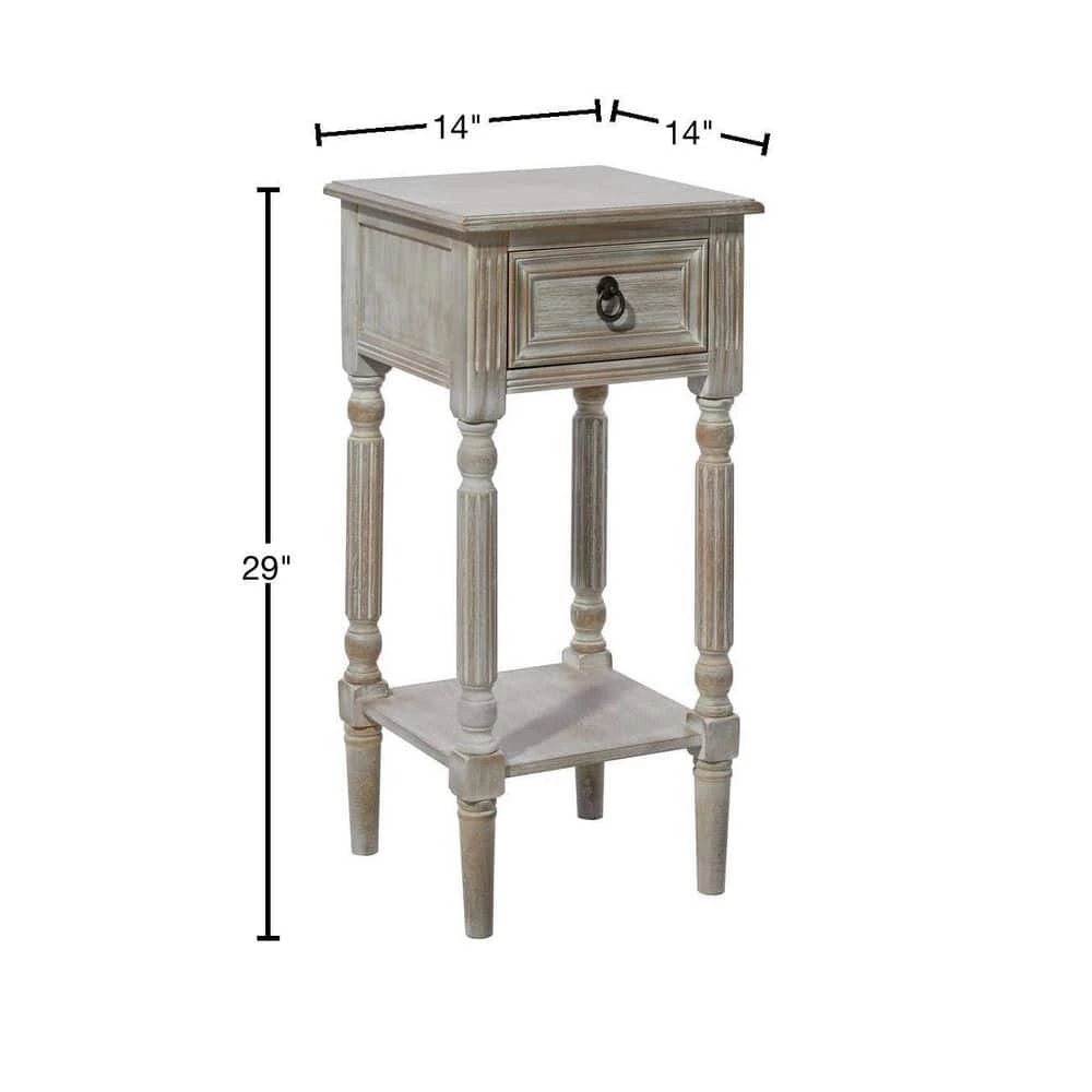 Bring a finishing touch to your home with an inviting appeal with this beautifully crafted accent table. A compact friendly table providing you with additional surface storage space any where in your home. This delicately sweet square accent table is ideal for entryways, living rooms, kitchens, hallways, and home offices. This item ships in 1 carton. Suitable for indoor use only. Some assembly required. Item has maximum weight limit of 100 lbs.. Farmhouse theme.