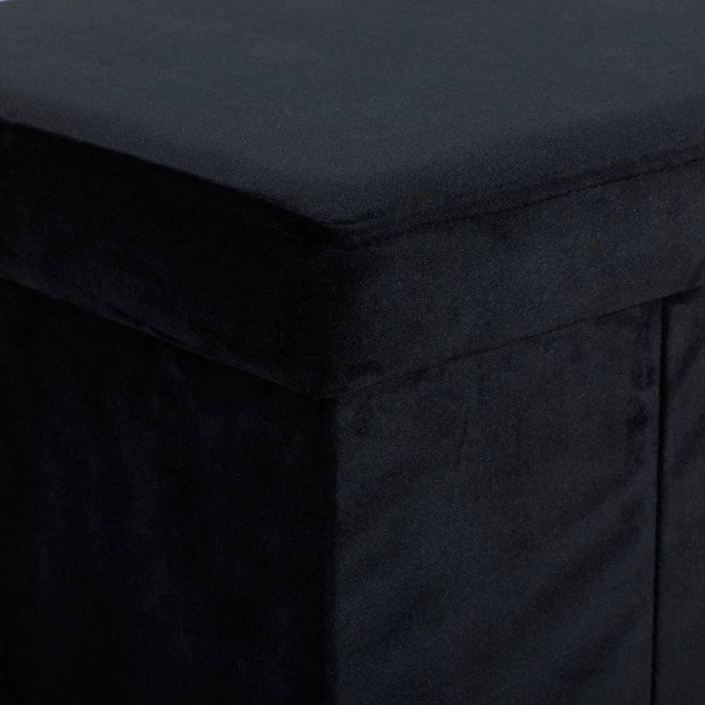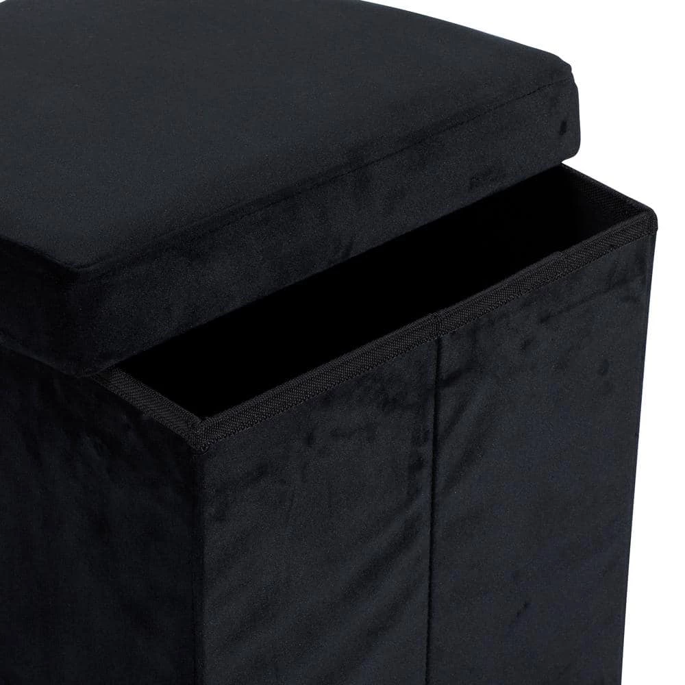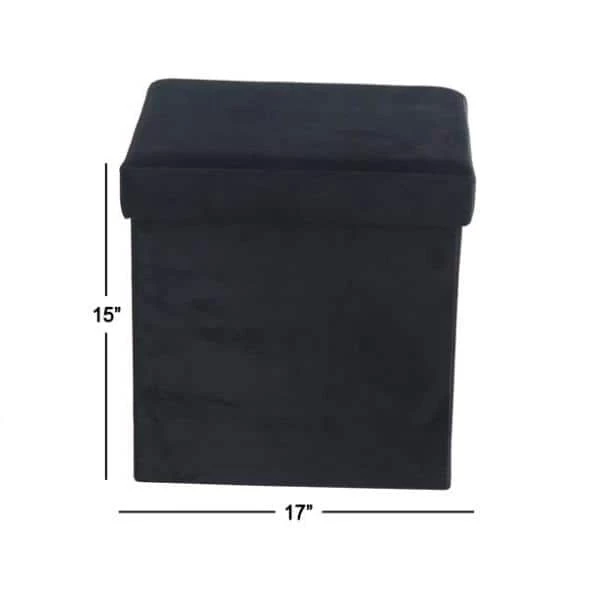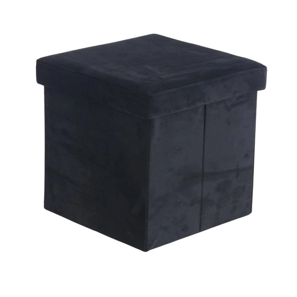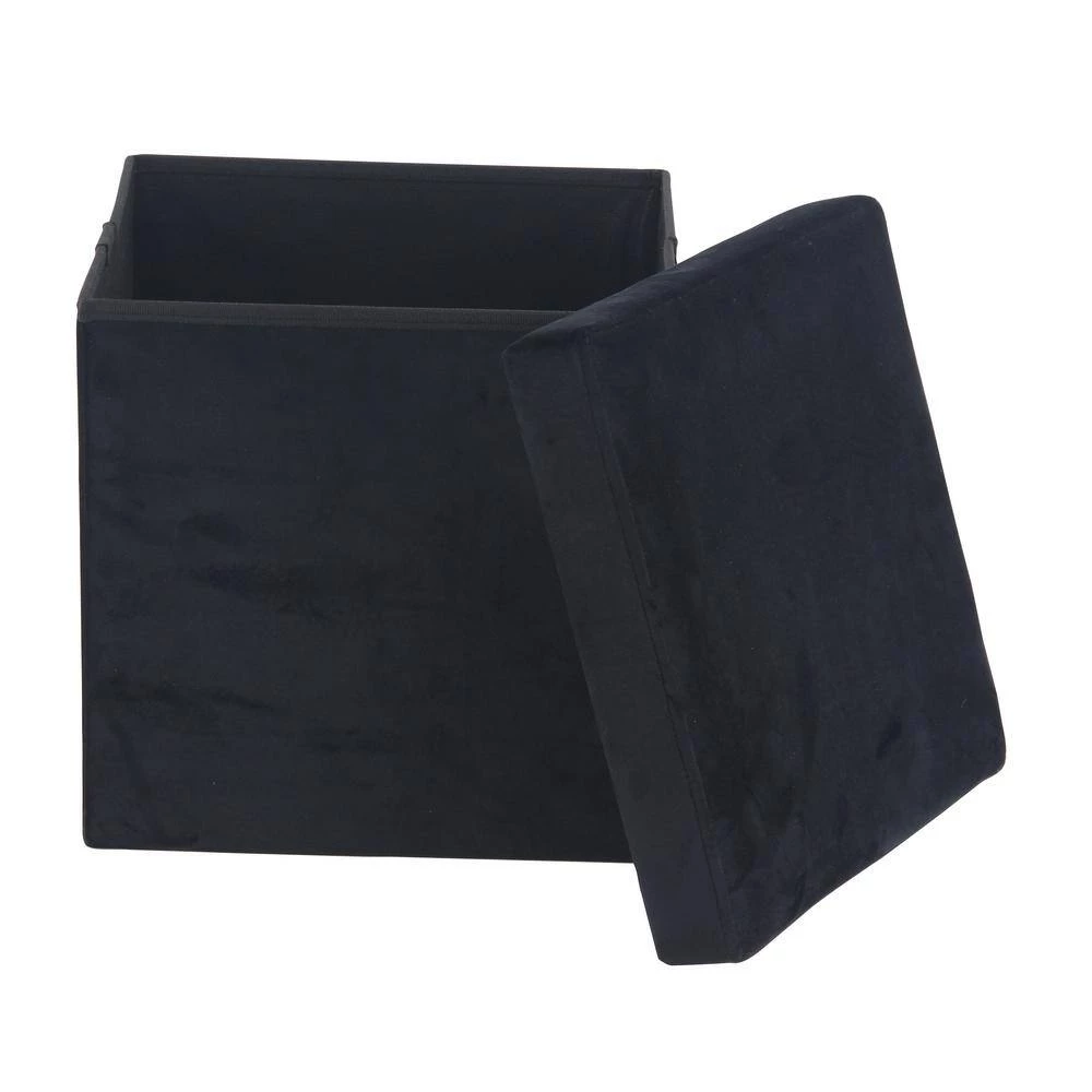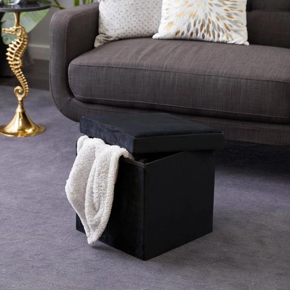- Collapsible storage ottoman is encased in soft polyester velvet