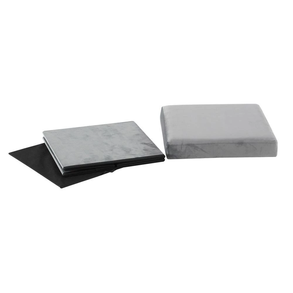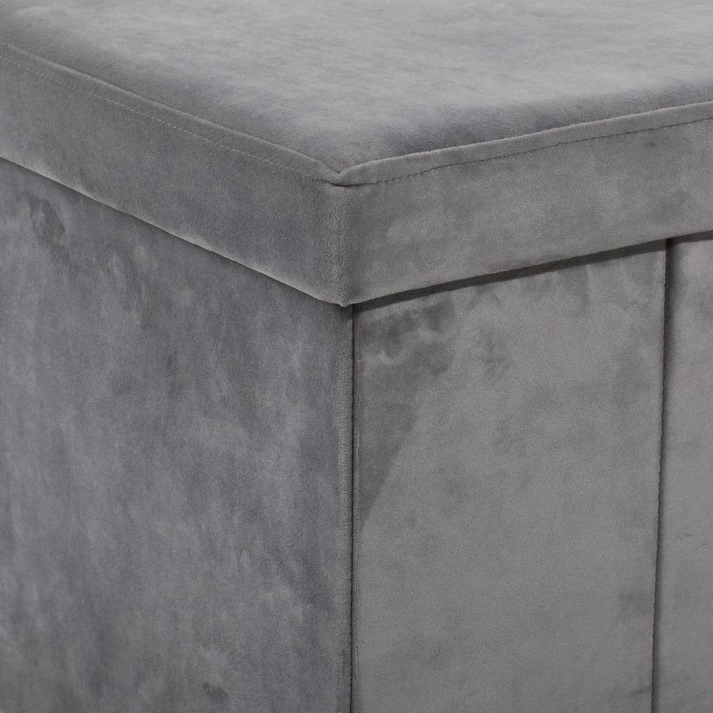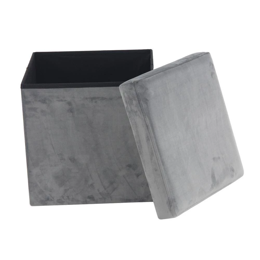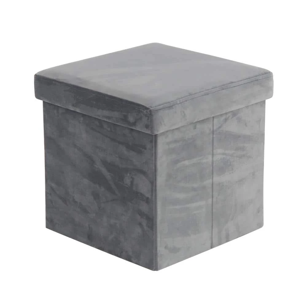 - Collapsible storage ottoman is encased in soft polyester velvet