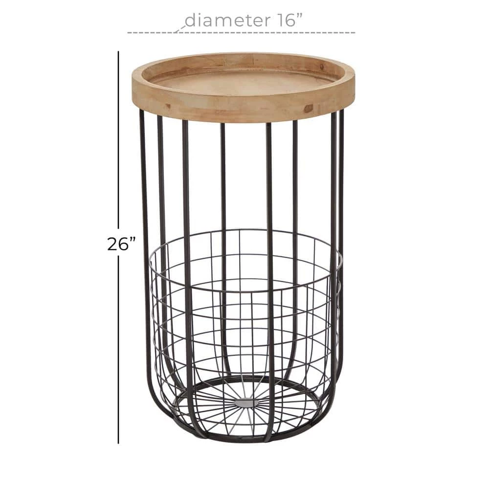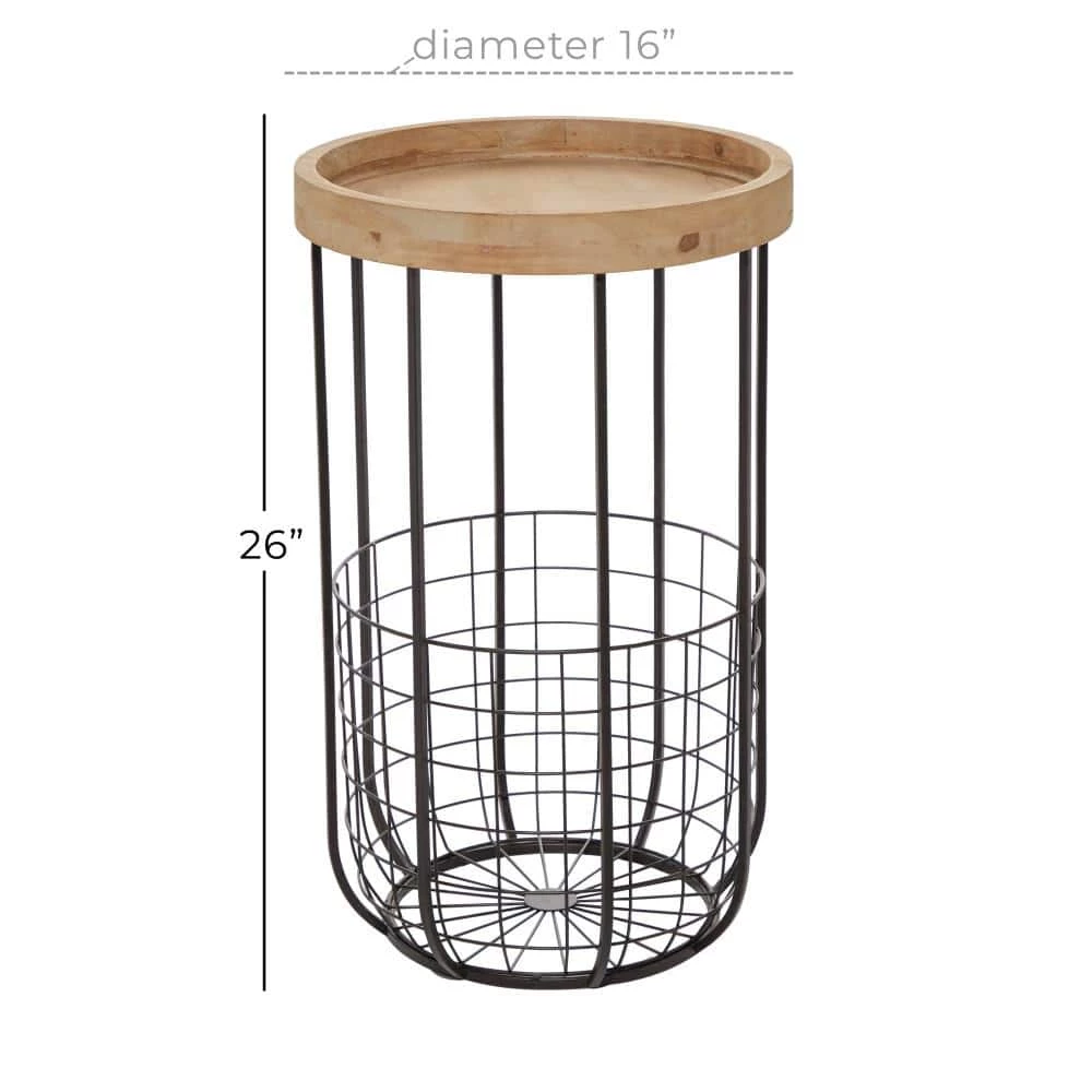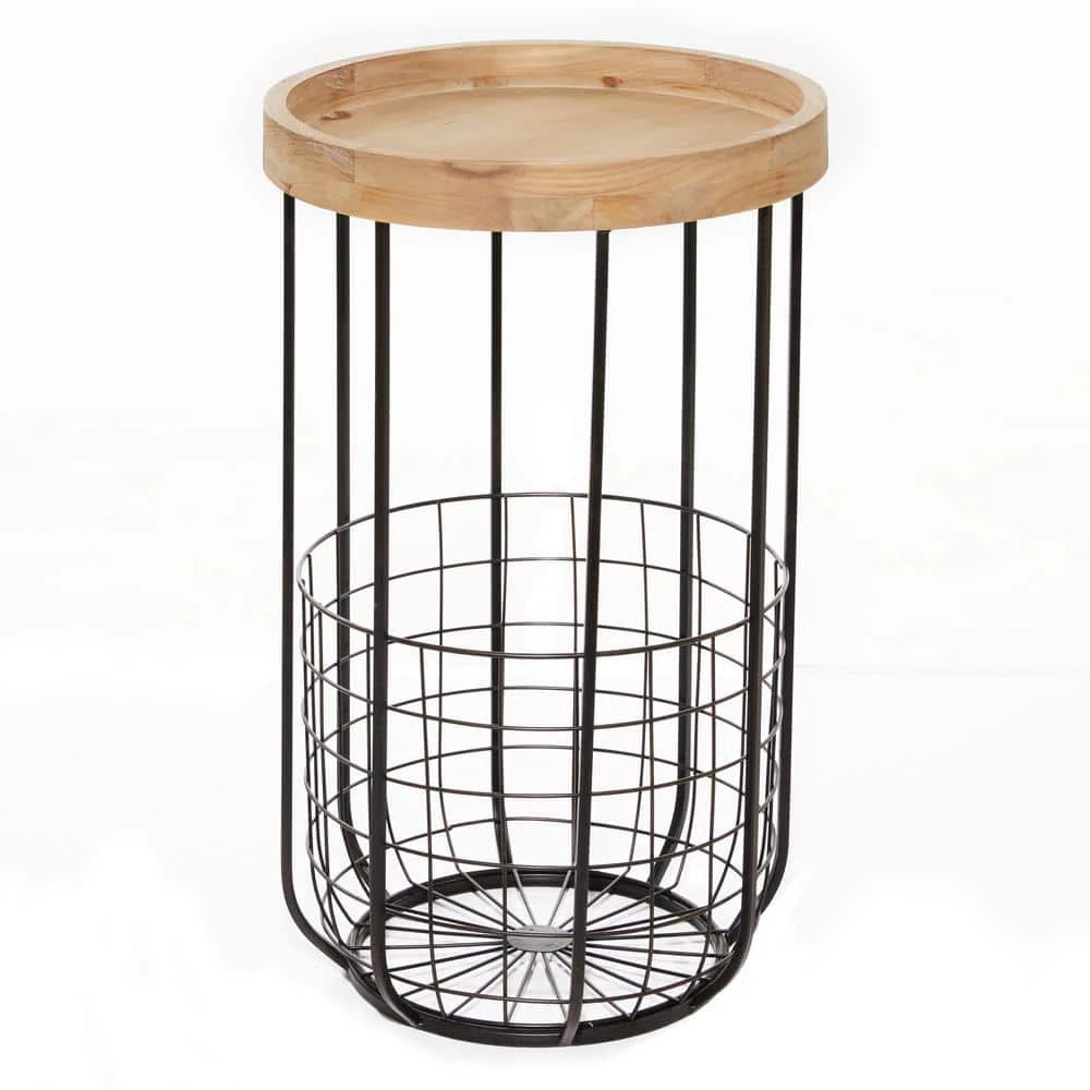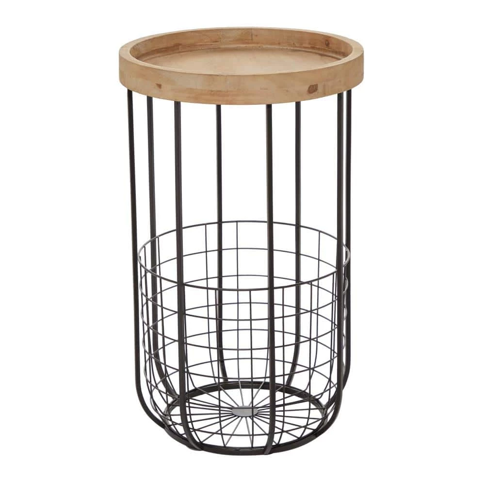 Bring a finishing touch to your home with an inviting appeal with this beautifully crafted accent table. A compact friendly table providing you with additional surface storage space any where in your home. Store this black metal accent table in any compact space next to your sofa or office desk for an added storage that easily go unnoticed. This item ships in 1 carton. This accent table features a basket storage at the bottom. Suitable for indoor use only. Maximum weight limit is 100 lbs. Industrial theme.