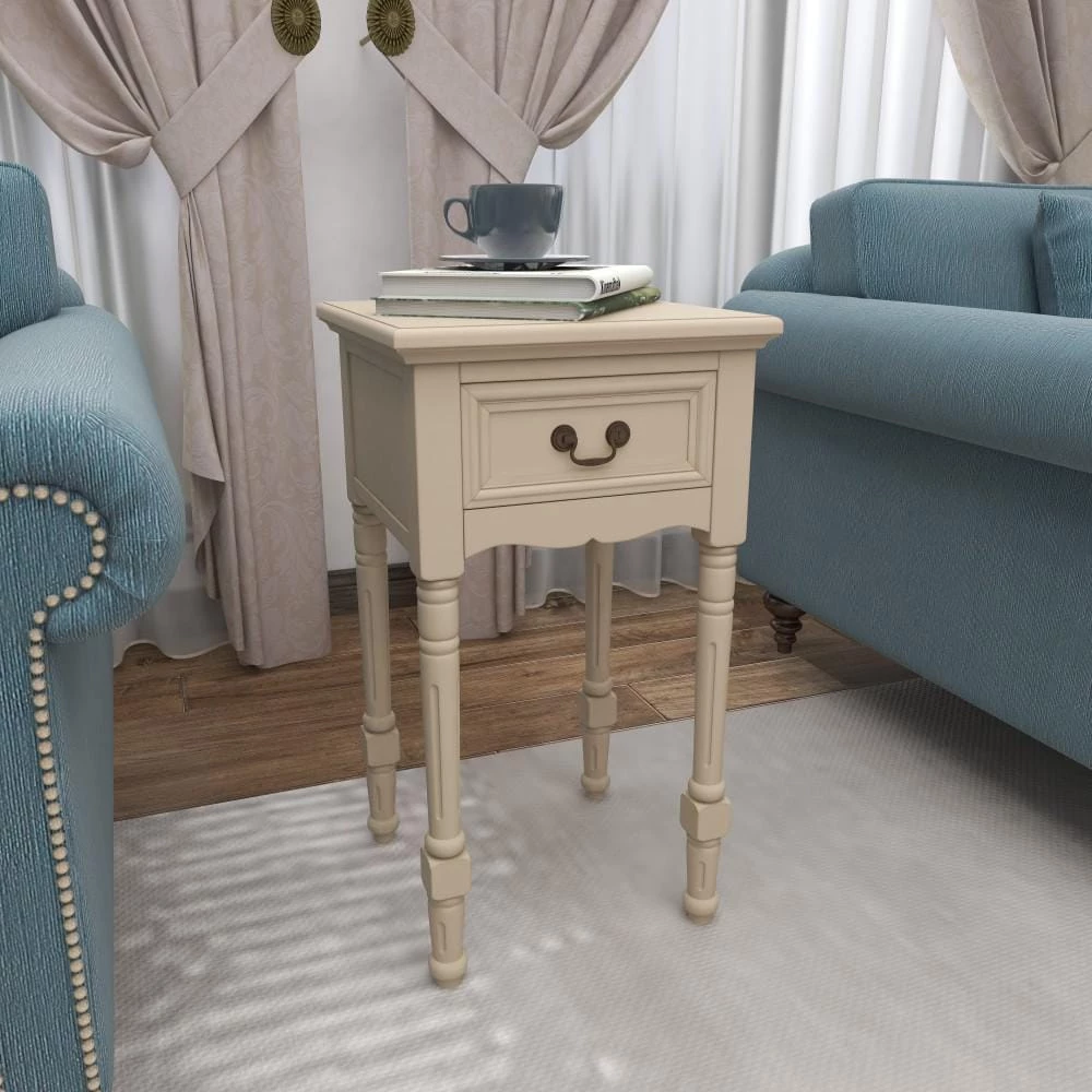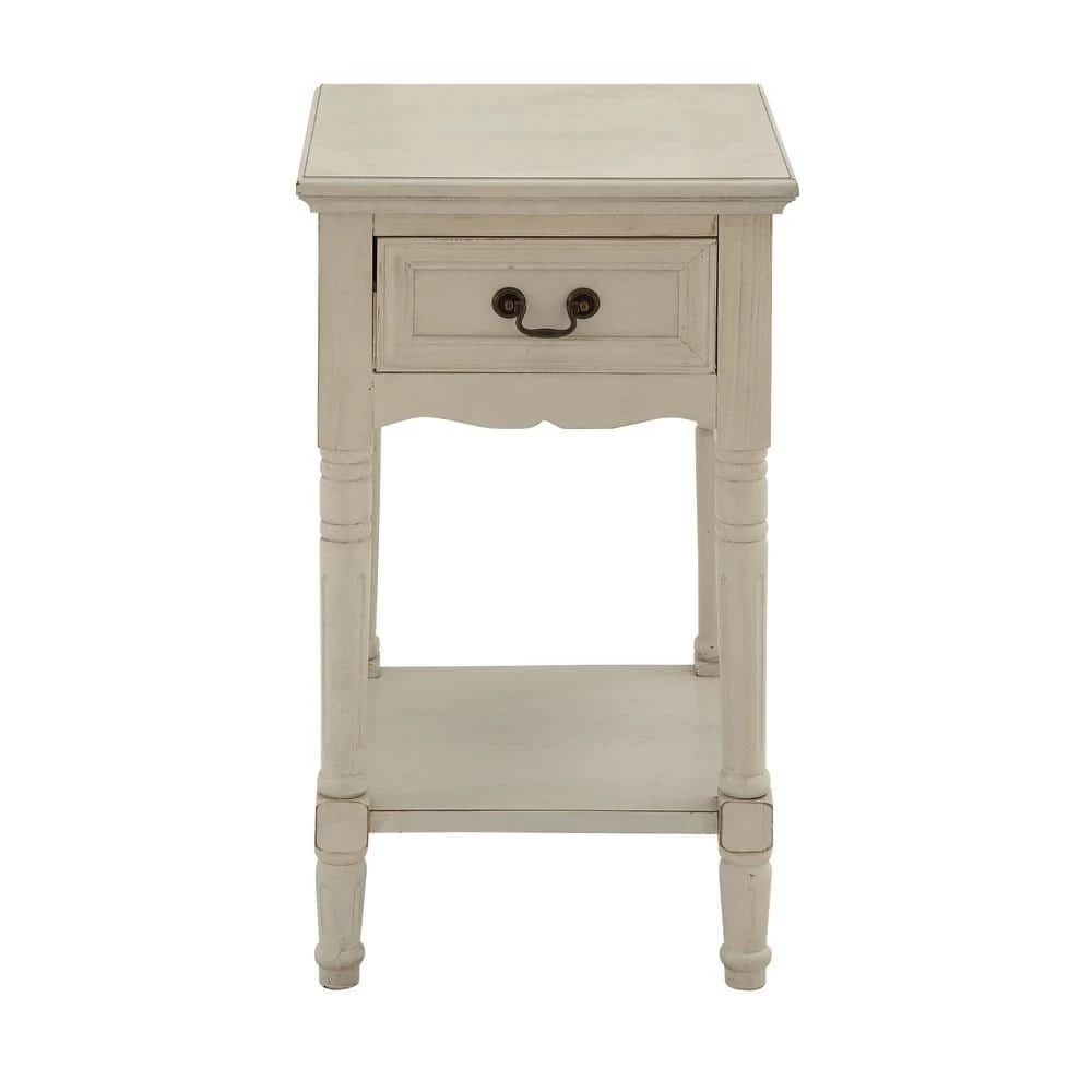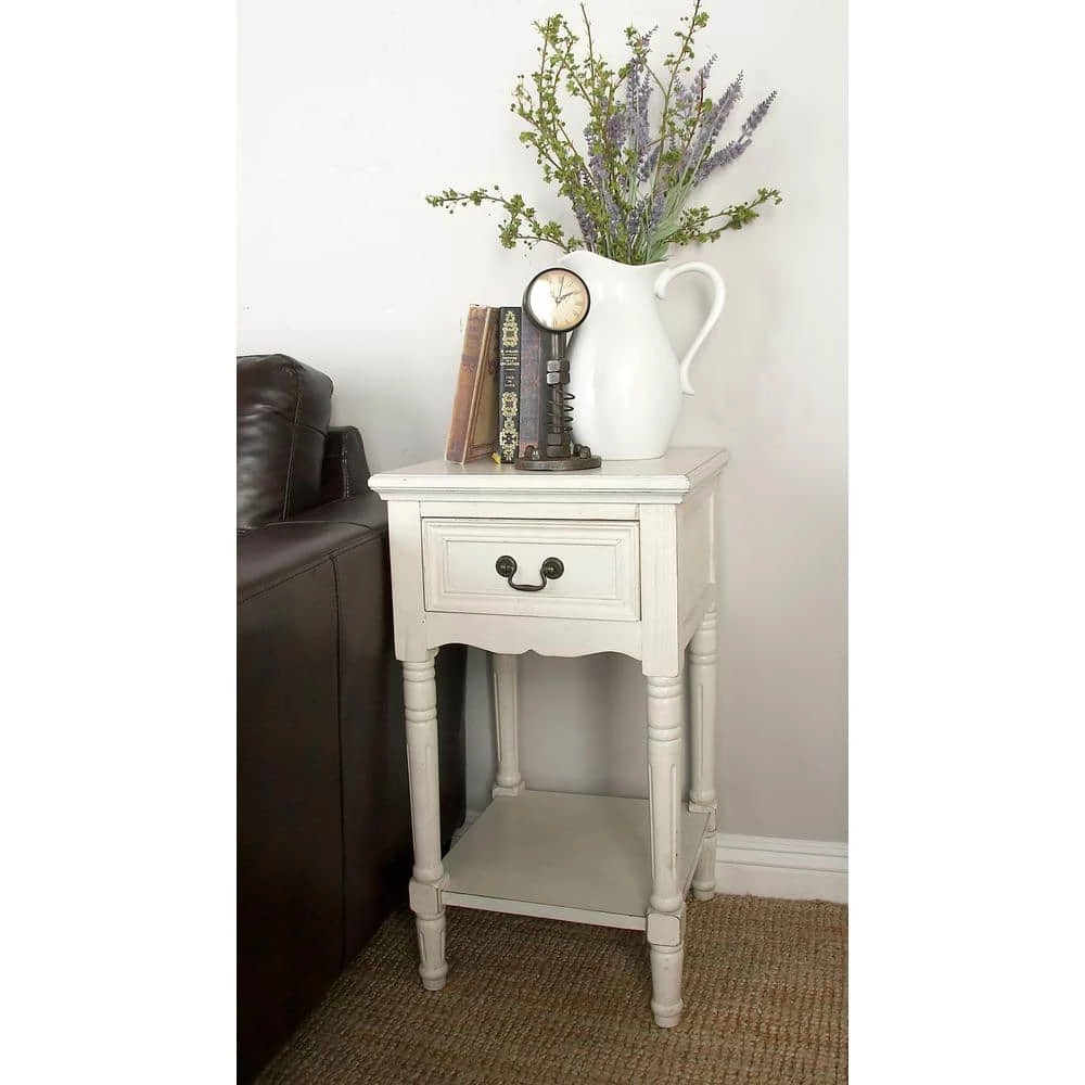 Bring a finishing touch to your home with an inviting appeal with this beautifully crafted accent table. A compact friendly table providing you with additional surface storage space any where in your home. Set this table next to your side chair or sofa for convenient access to personal items.. This item ships in 1 carton. This side table features 1 pull-out drawer. Suitable for indoor use only. Some assembly required. Maximum weight limit is 100 lbs.. This accent table features 1 lower shelf. Traditional style.
