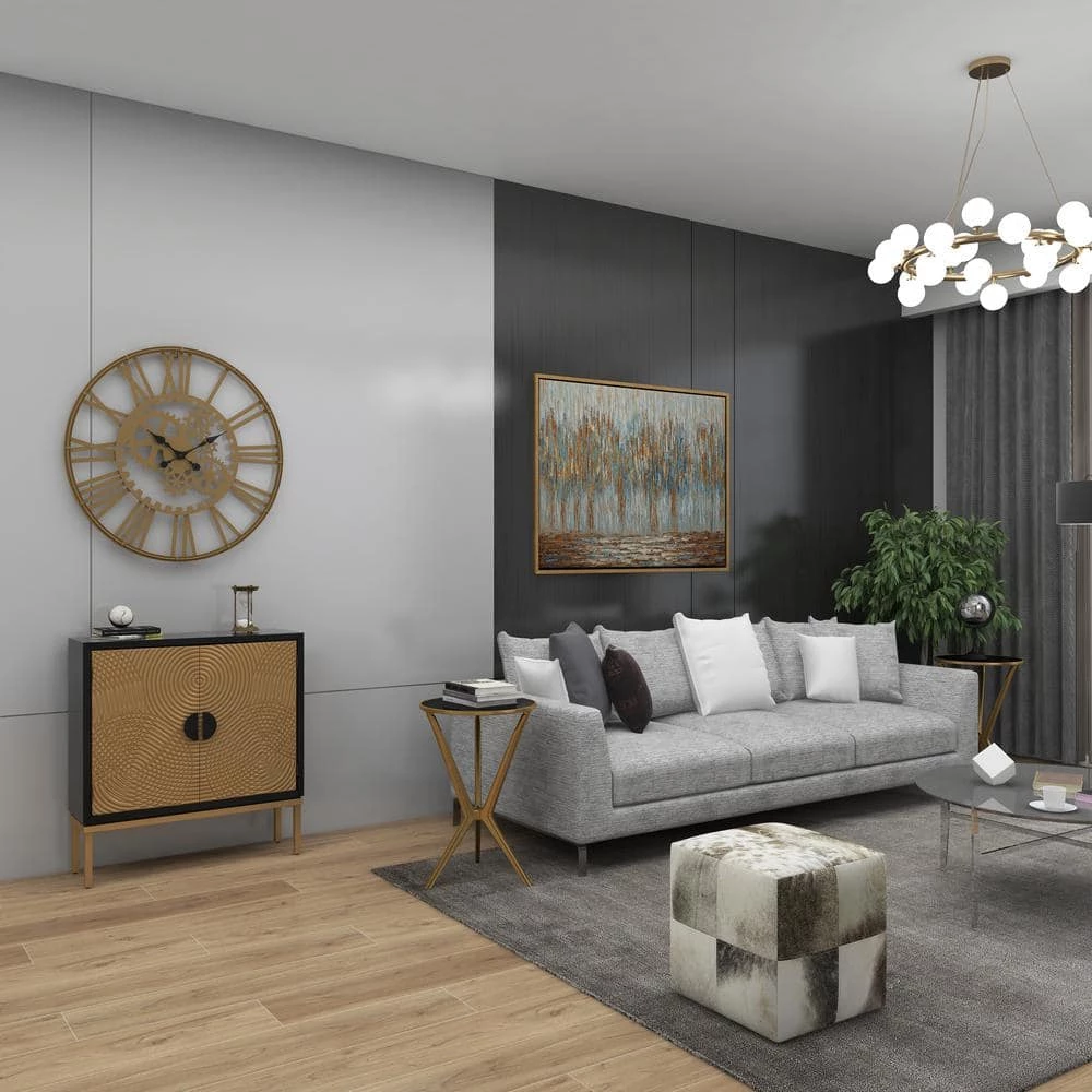 - Gold accent table is composed of aluminum and tempered glass for a light yet sturdy design
