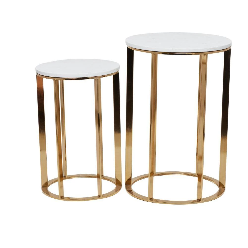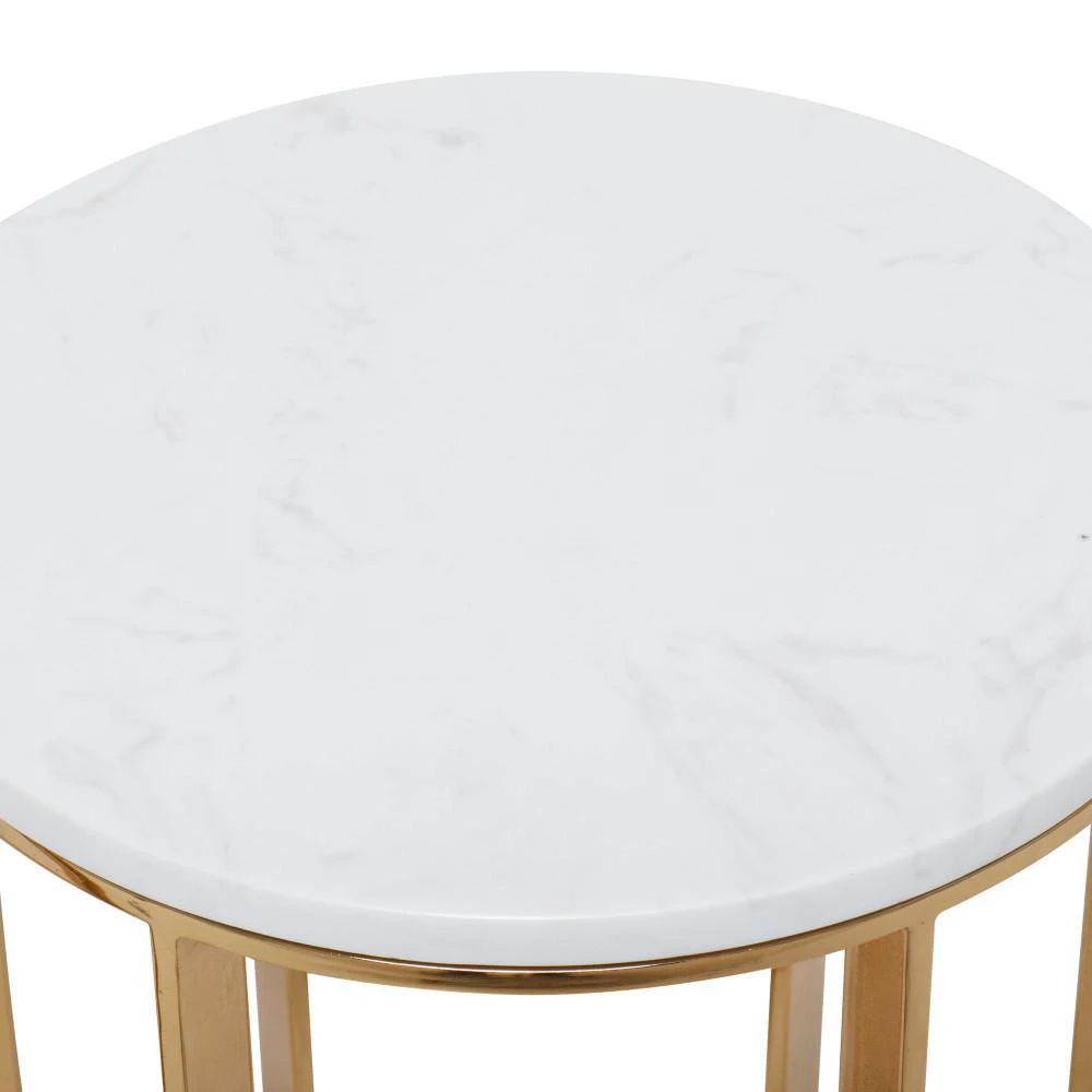 - These accent tables highlight white marble top with glossy metallic gold leg base finish