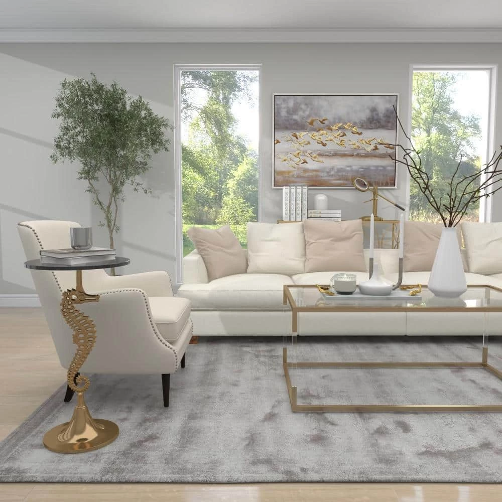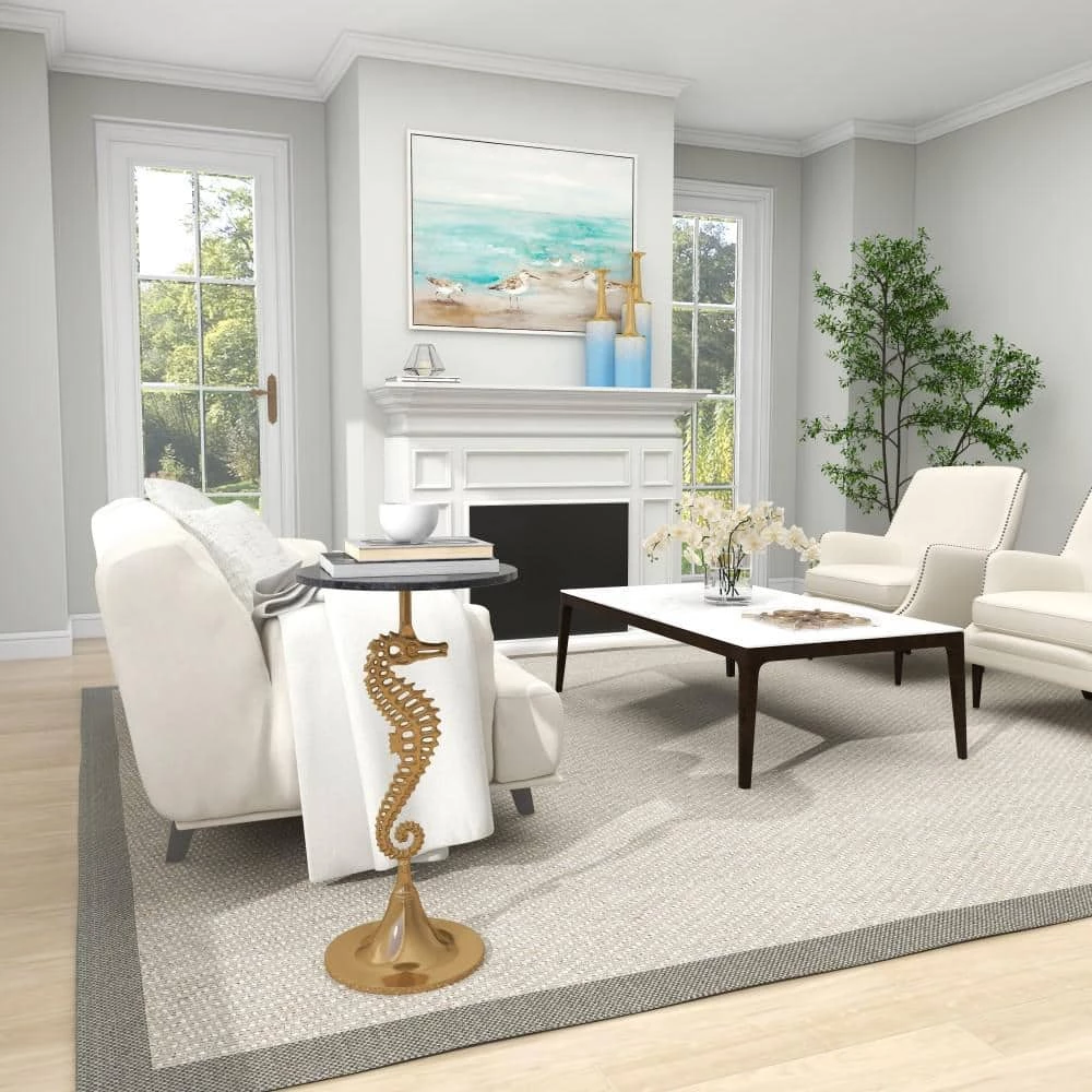 - A head-turner large accent furniture that includes a round top and a seahorse-designed pedestal