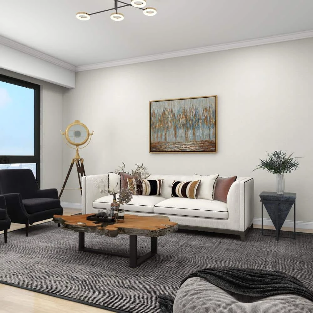 - A contemporary style offers neutral elements and basic forms with a bold design