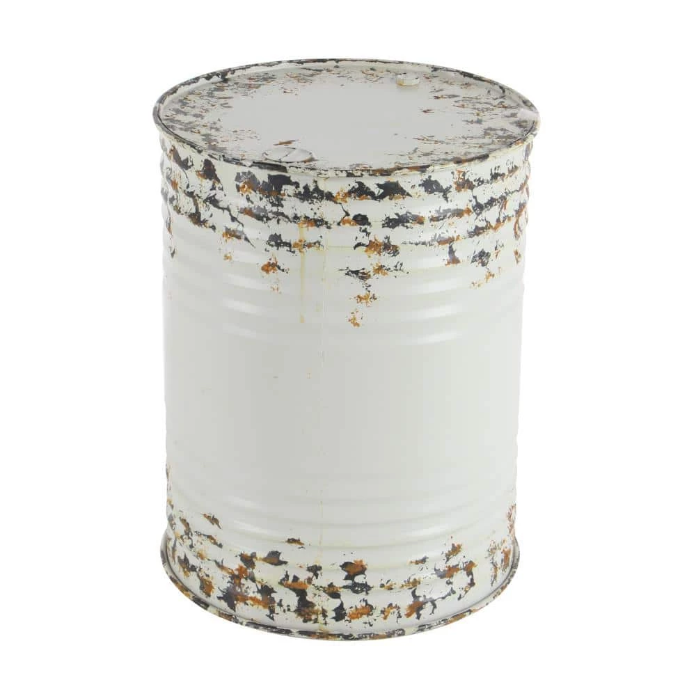 - This farmhouse style metal drum accent table set is shaped and welded iron materials to form the cylindrical design
