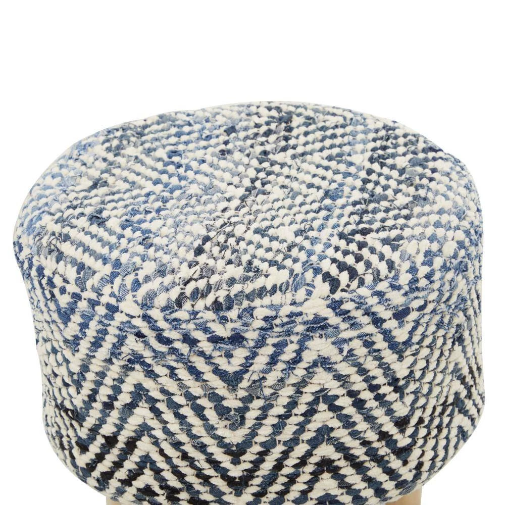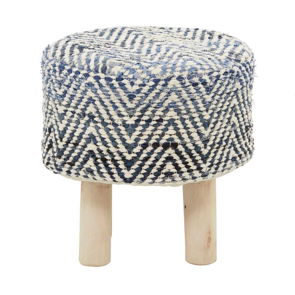 - This short round stool features a cotton woven body in black, dark blue, and cream white finishes