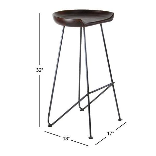 - Wood and metal bar stool measures 17″ in length, 13.5″ in width, 32″ in height and weighs 22 lbs