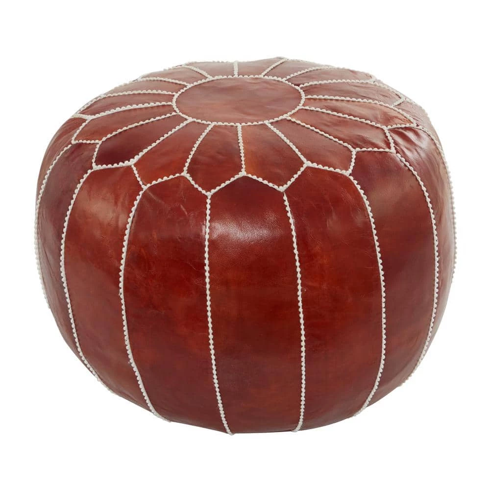 - This round leather pouf features a large white flower figure stitching pattern outline going all the way to the other side for a nice contrast of color