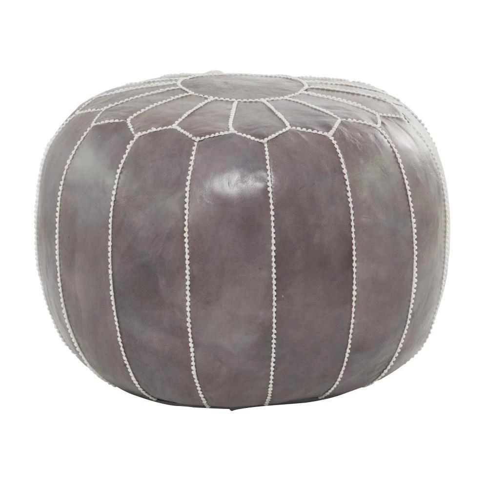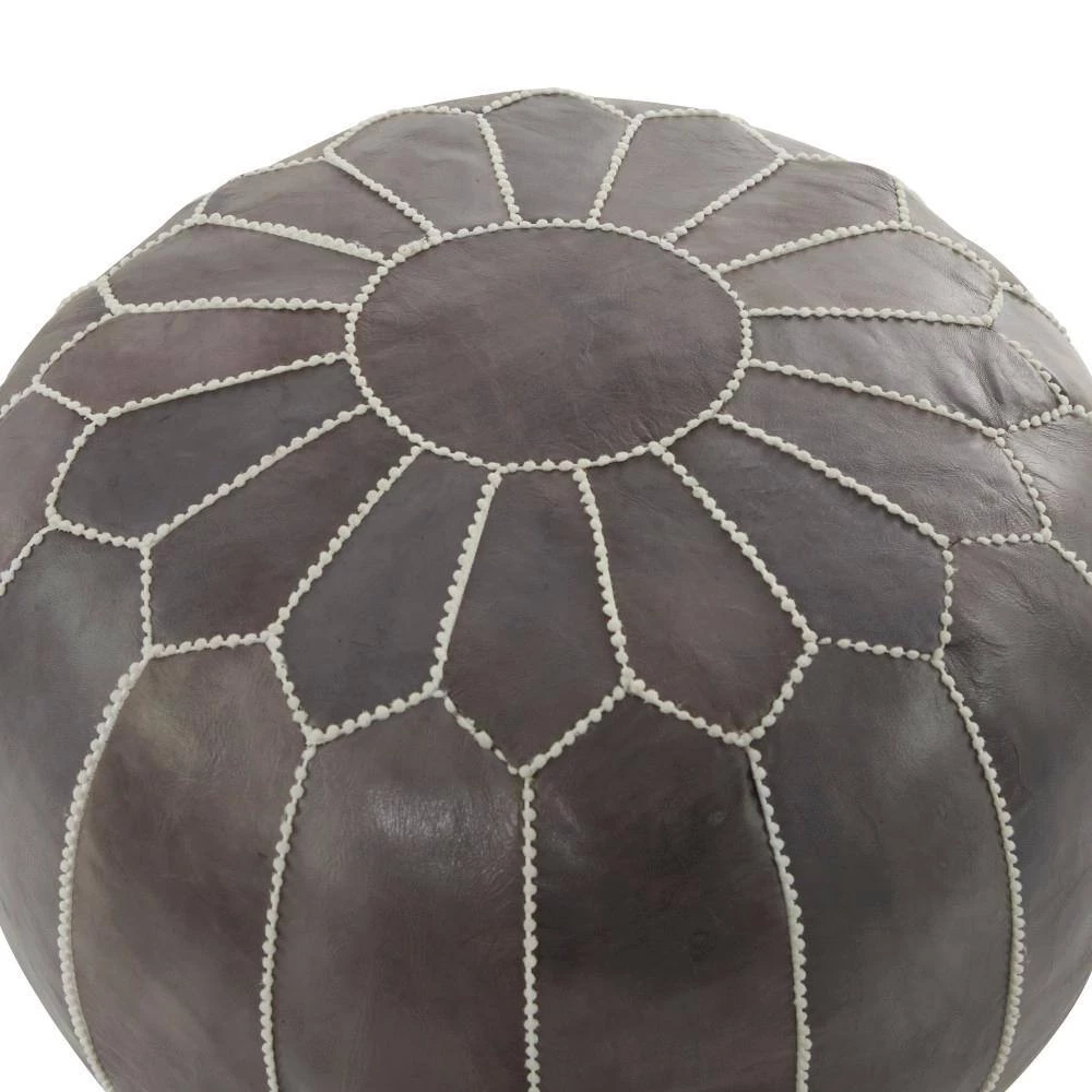 - This round leather pouf features a large white flower figure stitching pattern outline going all the way to the other side for a nice contrast of color