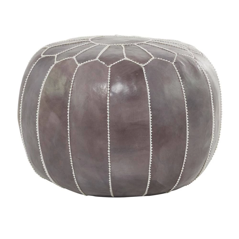 - Leather pouf measures 25″L x 24″W x 18″H and weighs 20 lbs.