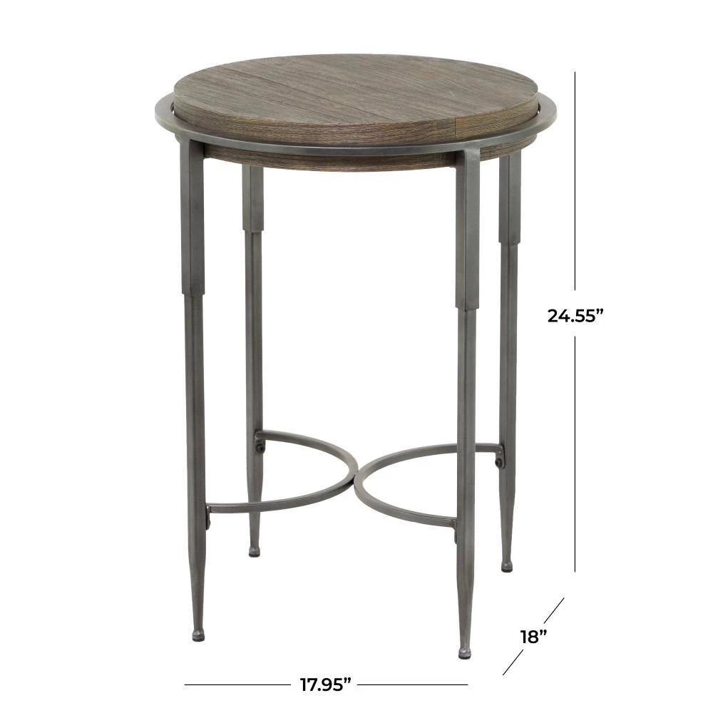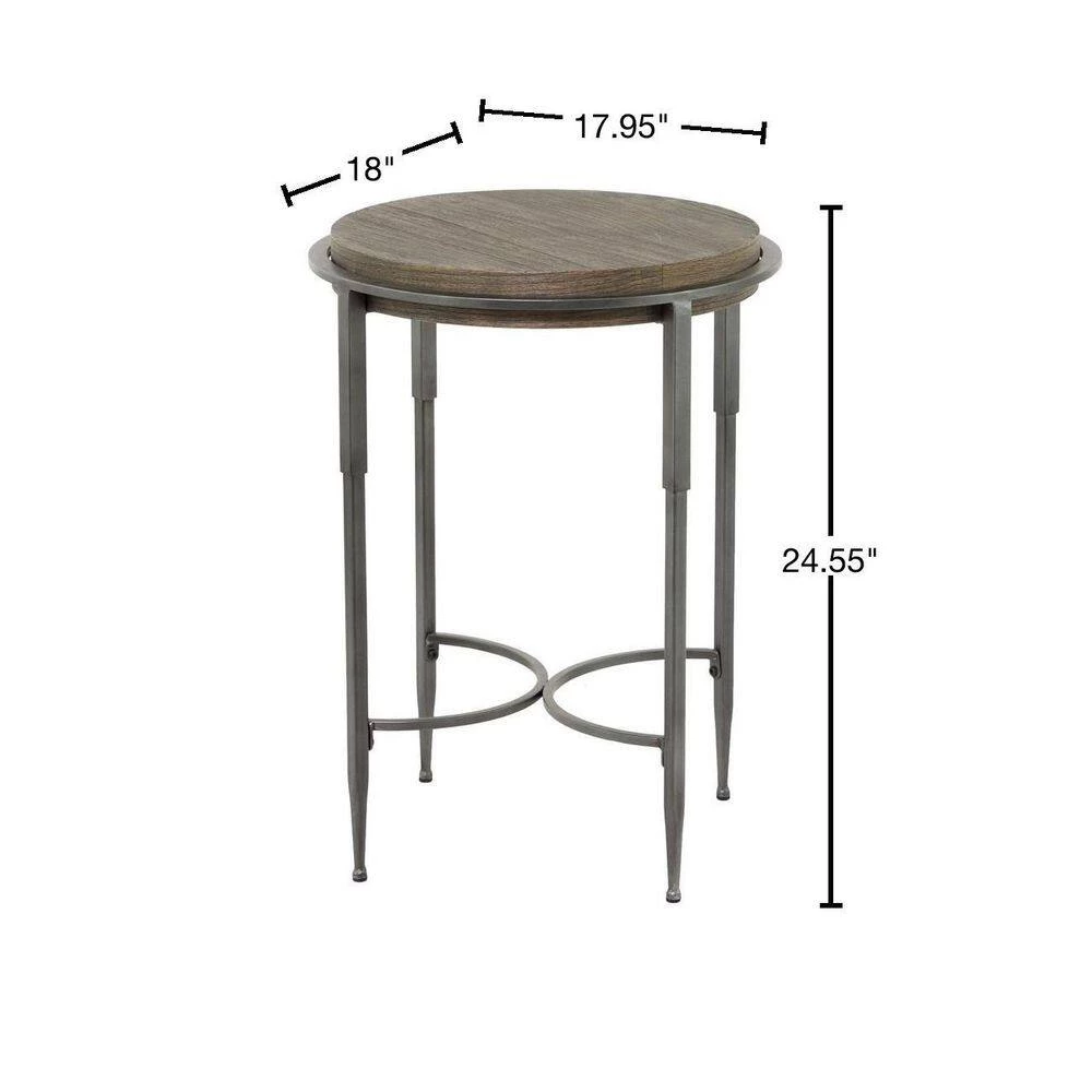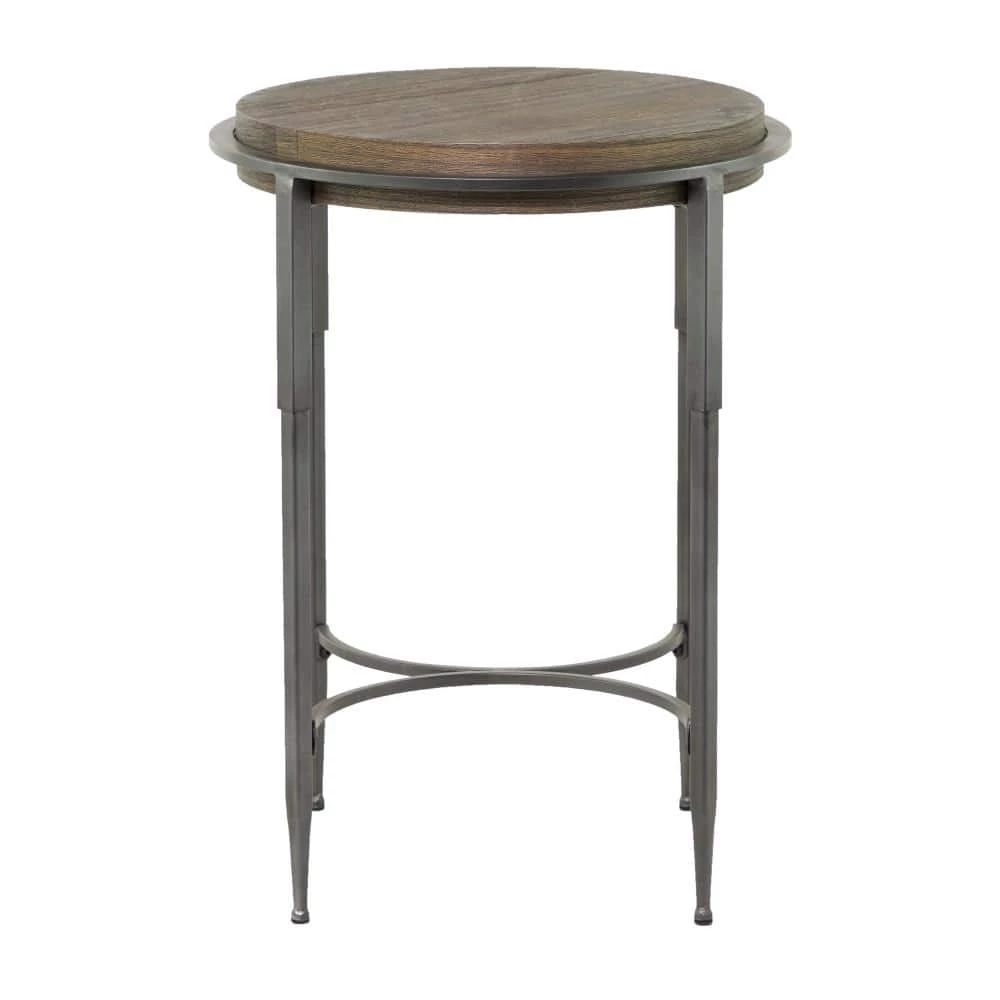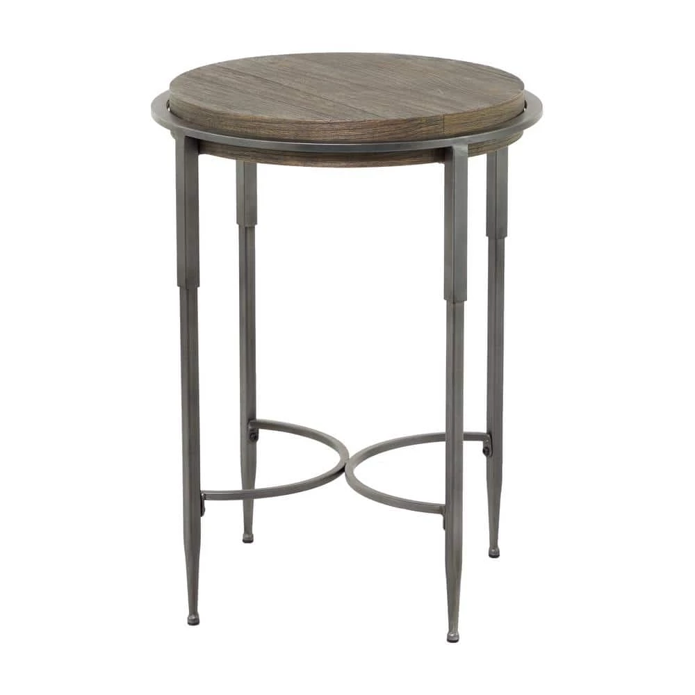 A compact friendly table providing you with additional storage space any where in your home. A compact friendly table providing you with additional surface storage space any where in your home. Add a touch of rustic beauty within your dashing living spaces as you display this accent table on neutral toned walls and other wooden furniture pieces. This table features black rubber stoppers at the base for a sturdy and smooth footing on surface and furniture. This item ships in 1 carton. Suitable for indoor use only. Holds up to 100 pounds. Industrial style.