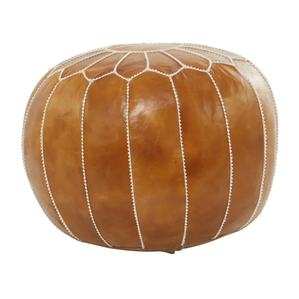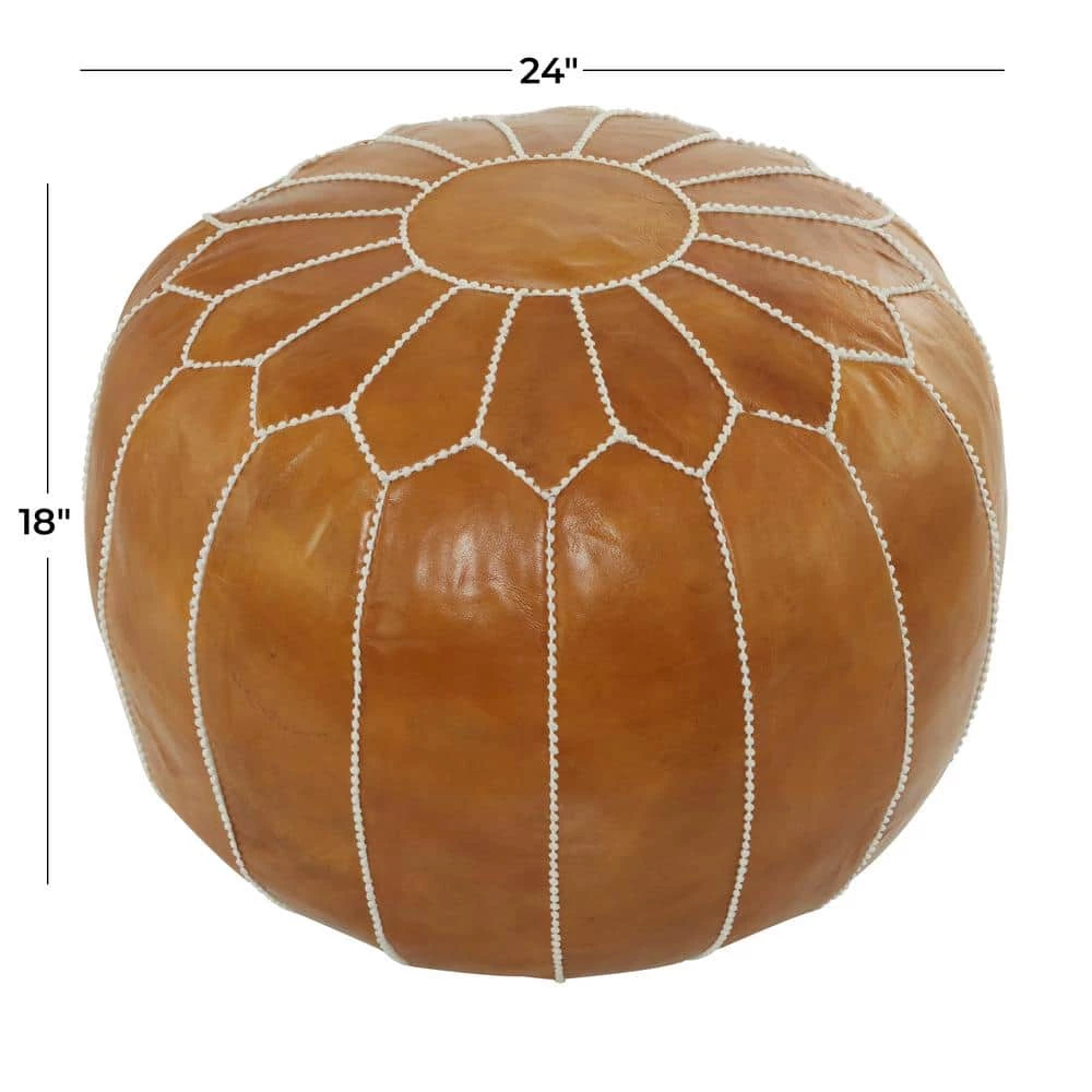 - Leather pouf measures 25″L x 24″W x 18″H and weighs 20 lbs.