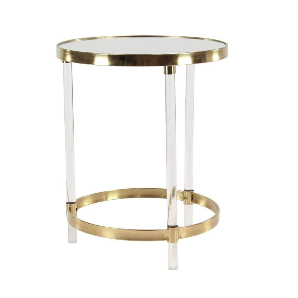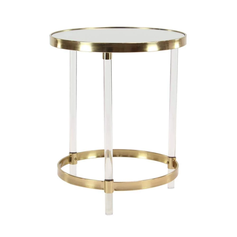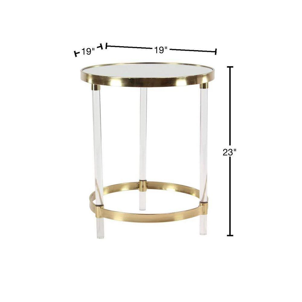 - Gold end table is crafted with iron frame, acrylic and mirror top