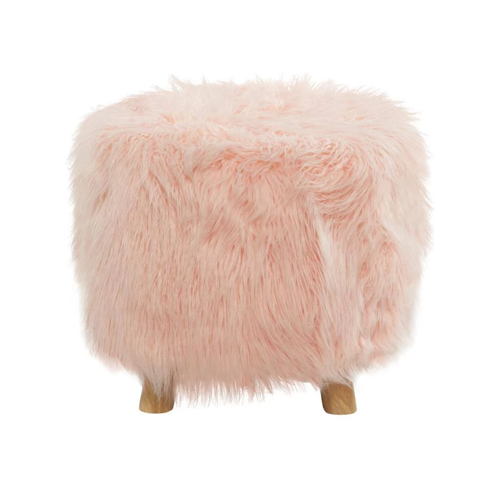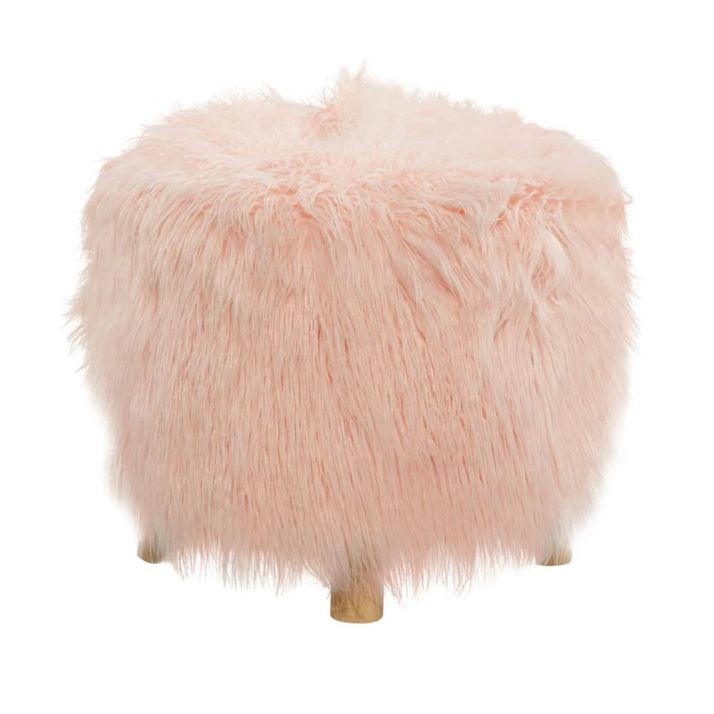 - This contemporary style foot stool is made from polyester, faux fur, and pine wood materials