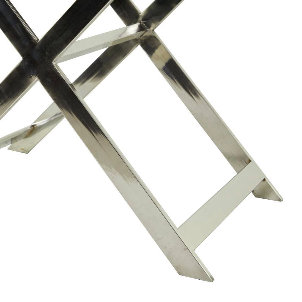 - Accent furniture highlights a rectangular wine rack with spacious storage for wine bottles designed with black exterior with side handles and supported by x-shaped stainless steel stand