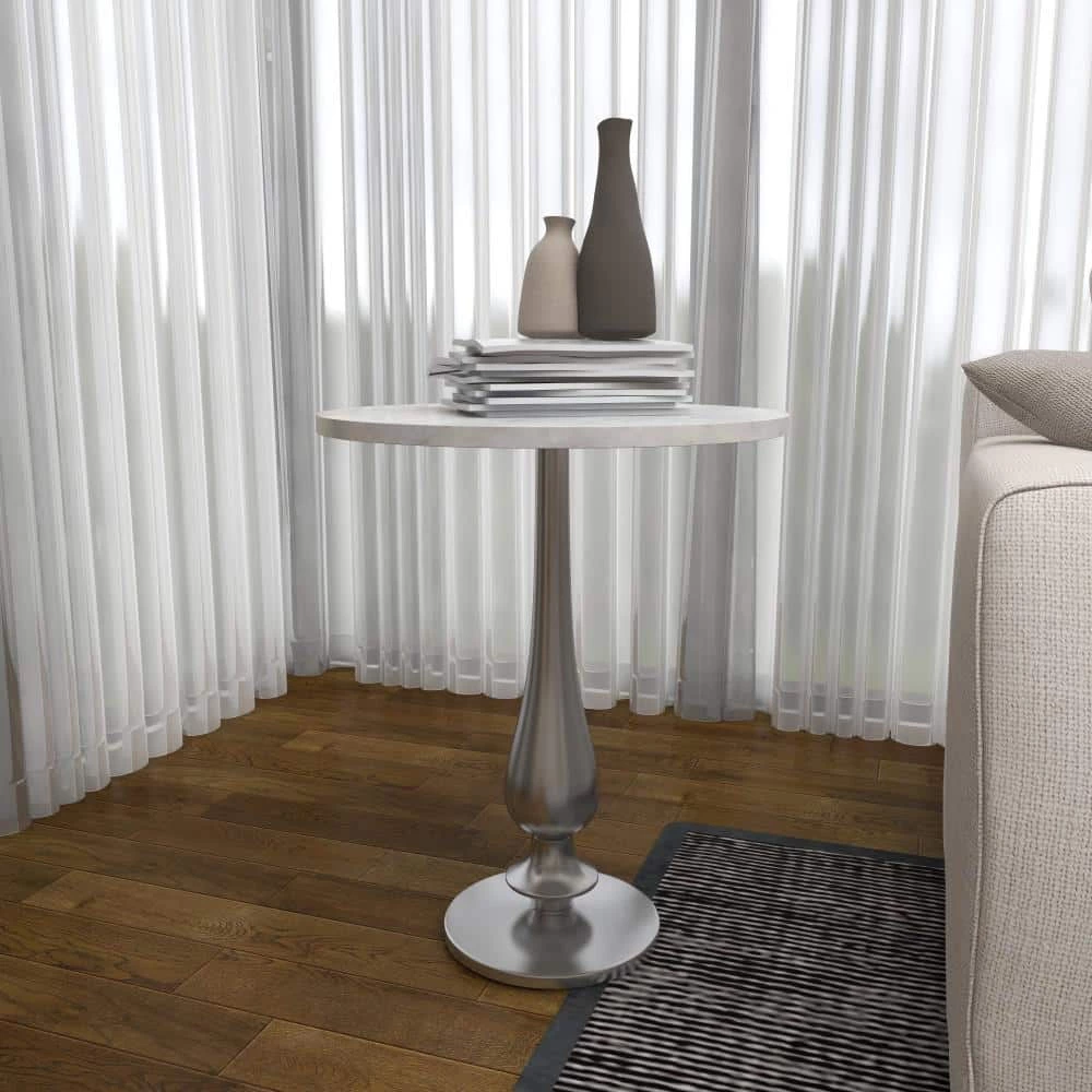 - Round traditional pedestal accent table features a smooth marble top with turned style stand for added curves and a round base
