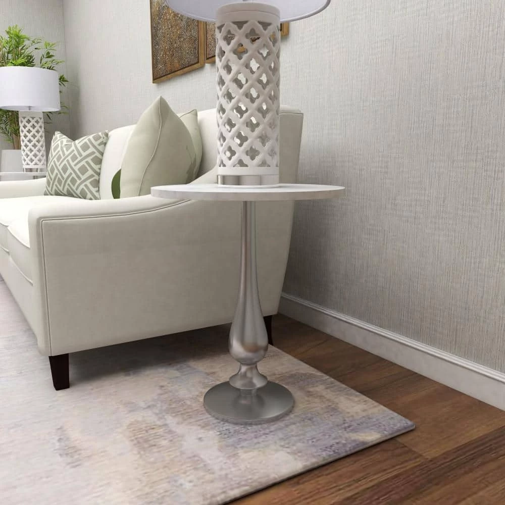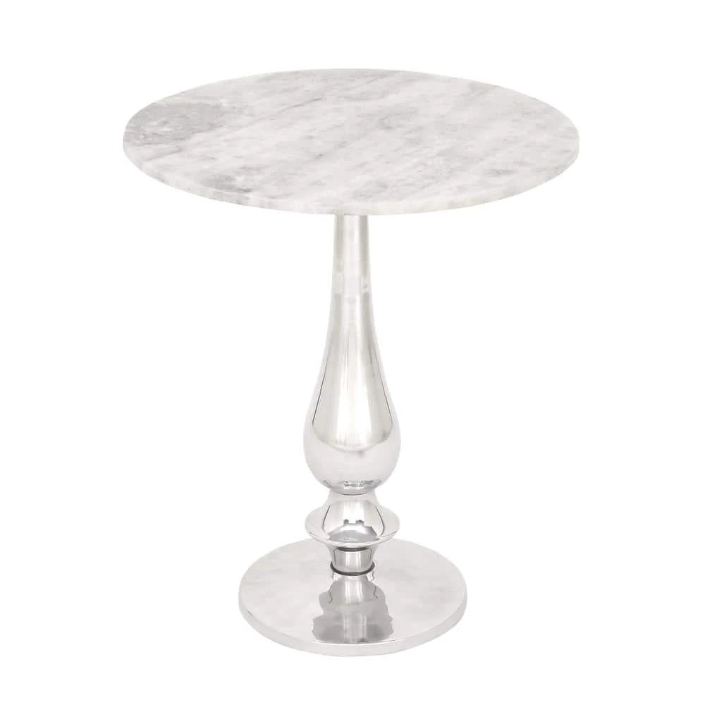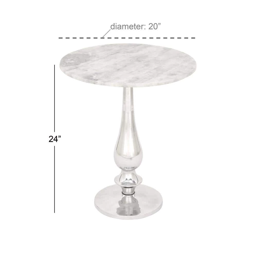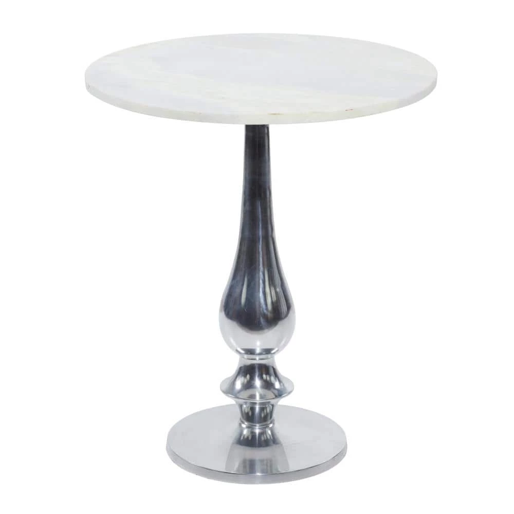 Bring a finishing touch to your home with an inviting appeal with this beautifully crafted accent table. A compact friendly table providing you with additional surface storage space any where in your home. Tall pedestal accent table makes a stylish addition when decorate with fresh cut flowers in glass vase next to armed upholstered chairs. This item ships in 1 carton. Suitable for indoor use only. Some assembly required. Marble is a product of nature and no two pieces are exactly alike. It is prone to variations in color and/or patterns in the material that add to the beauty and charm of the piece.. Maximum weight limit is 100 lbs. Made in India. Traditional style.