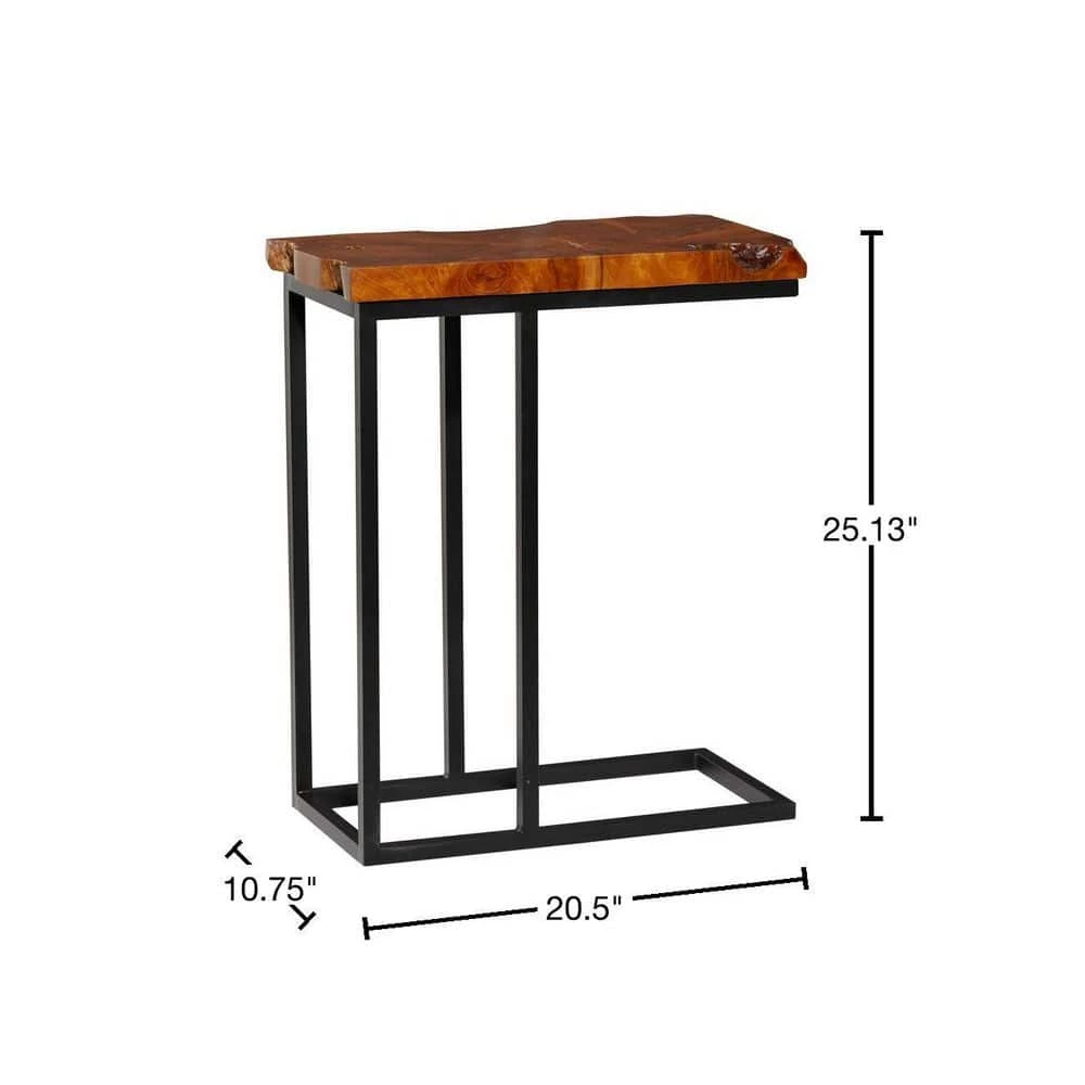 - Compact C-shaped end table gives your space a natural flair with the teak wooden top on a sleek black frame that provide convenient storage in any space