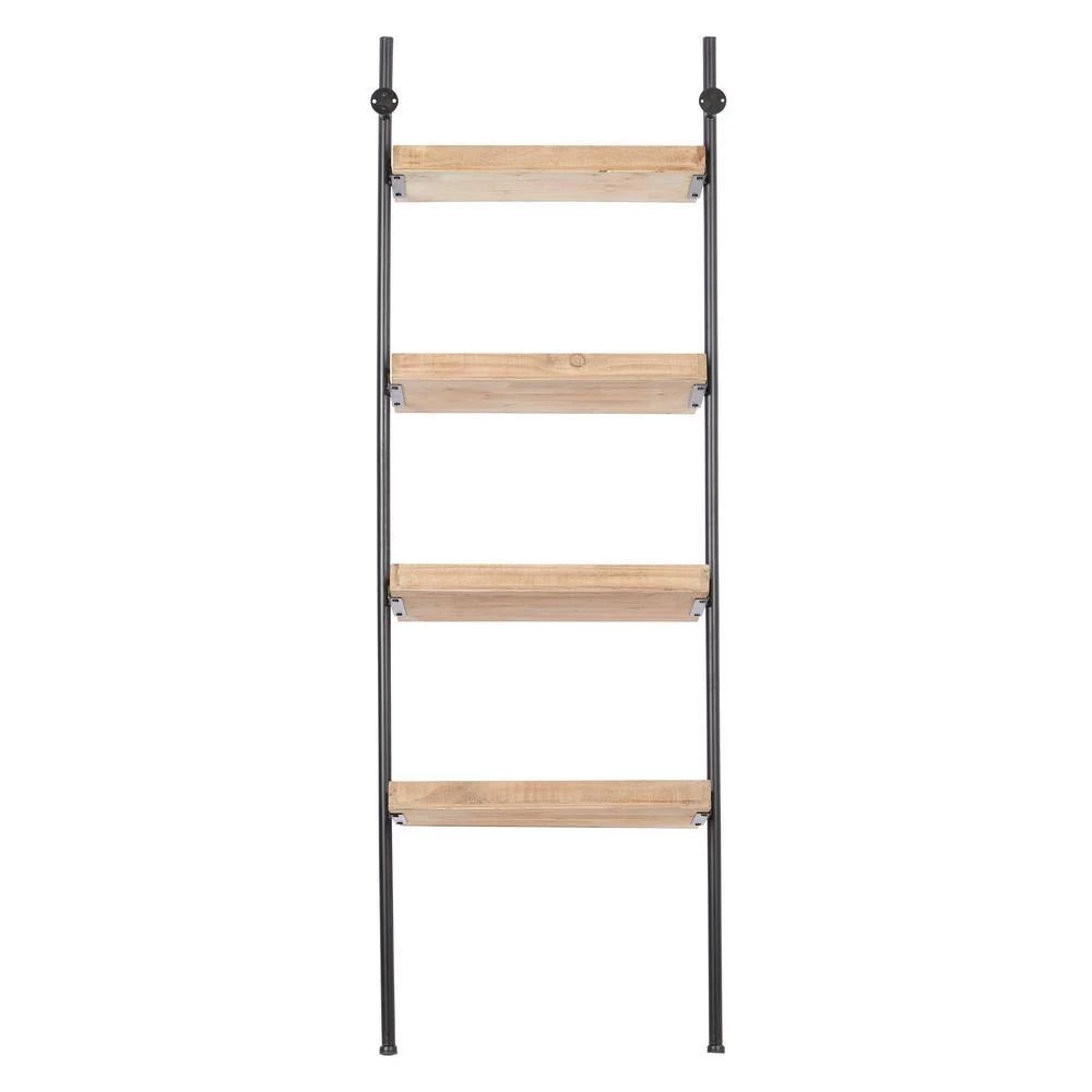 Create a rustic display with this ladder shelving unit with hardcover books, organic vases, large beaded garlands and potted plants. Designed with rubber stoppers at the base that prevent scratching furniture and table tops, as well as sliding around. This item ships in 1 carton. Ladder can function as a unique bookshelf. Includes wall mount hardware for secure display; nails and screws are not included. Suitable for indoor use only. Maximum weight limit for shelf is 30 lbs.. This item has 4 shelves. Farmhouse style.