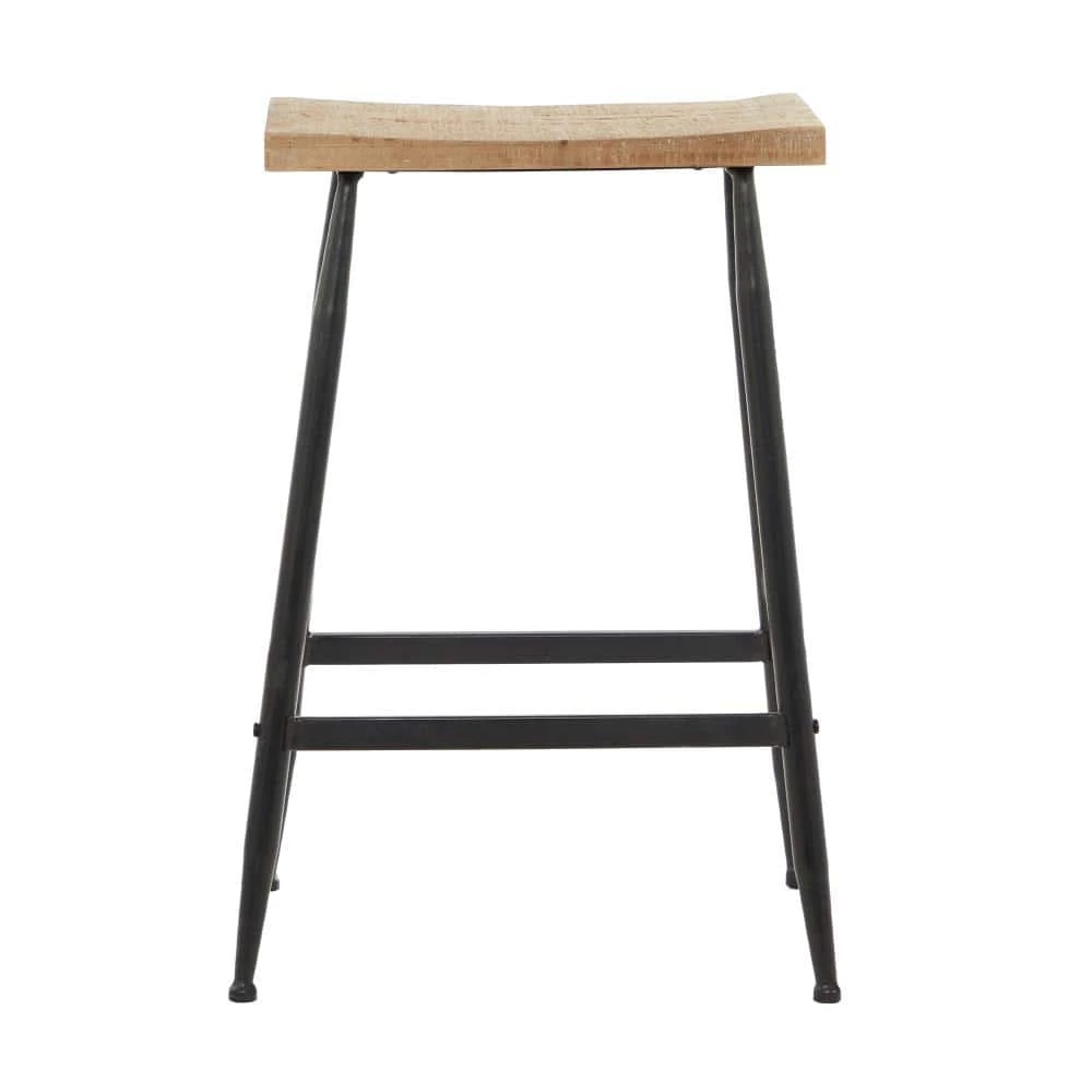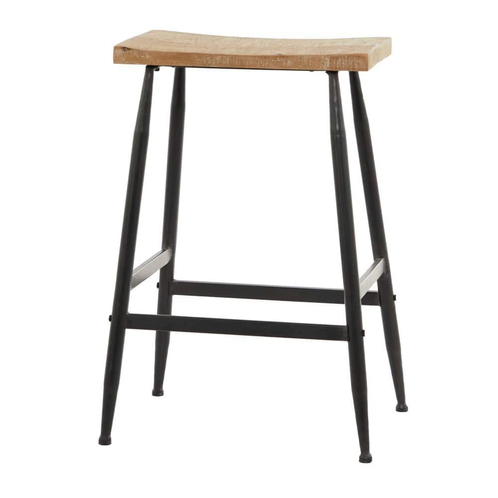 - The seat of this counter stool features a saddle form and metal foot rest for comfortable seating