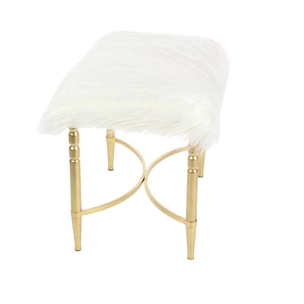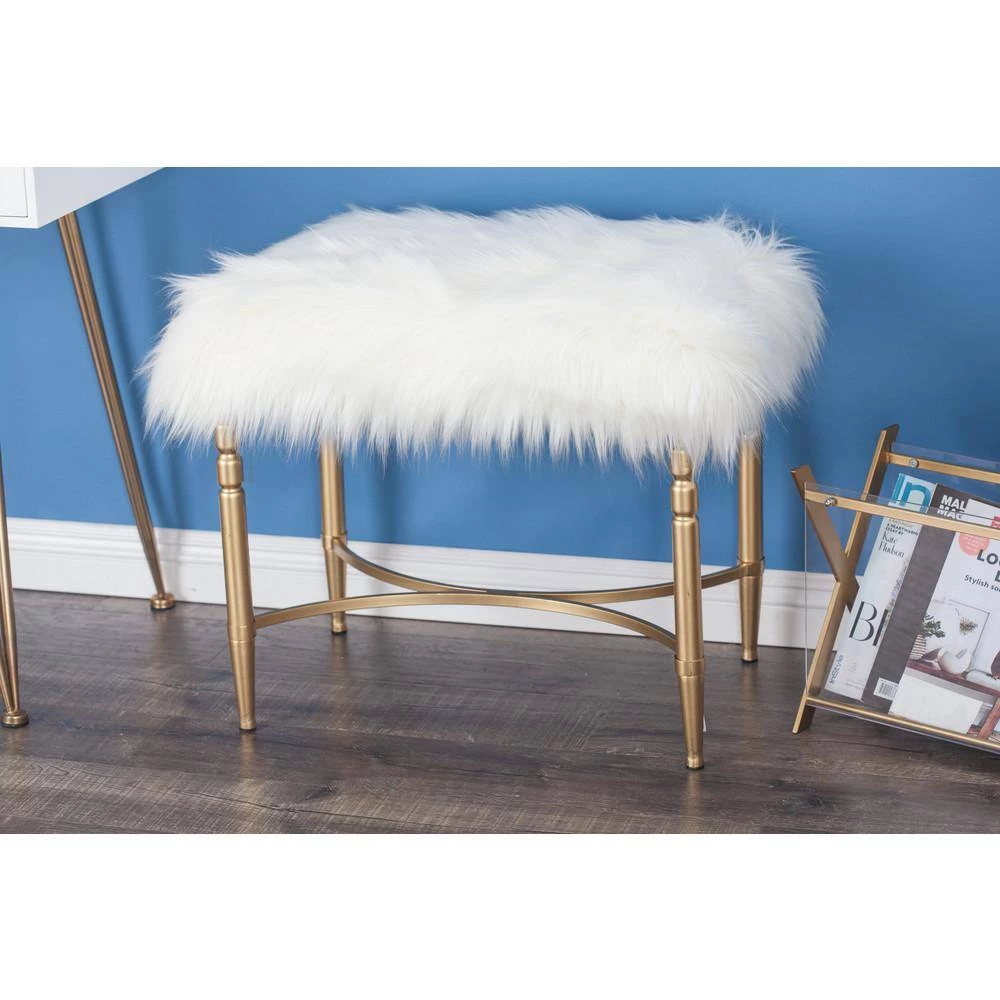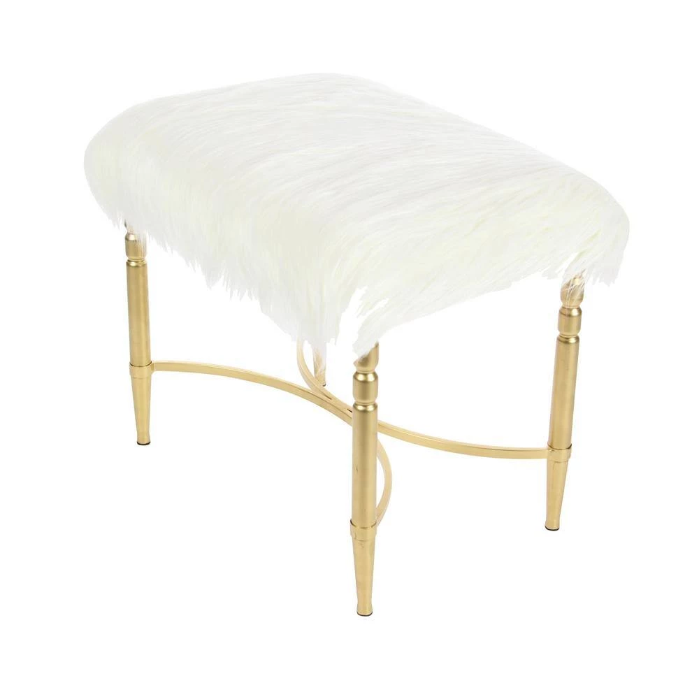 - Contemporary accent stool highlights white faux fur seat cushion with metallic gold frames