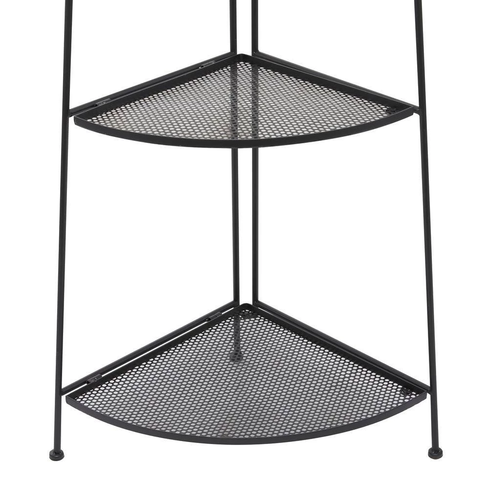 - This standing corner bakers rack features a 4-tier mesh tray shelving unit design with a pyramid inspired body structure