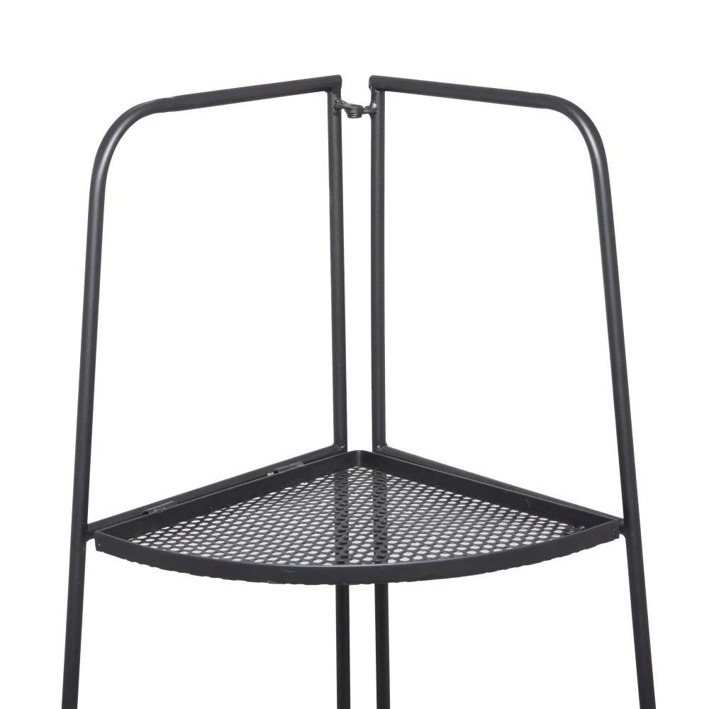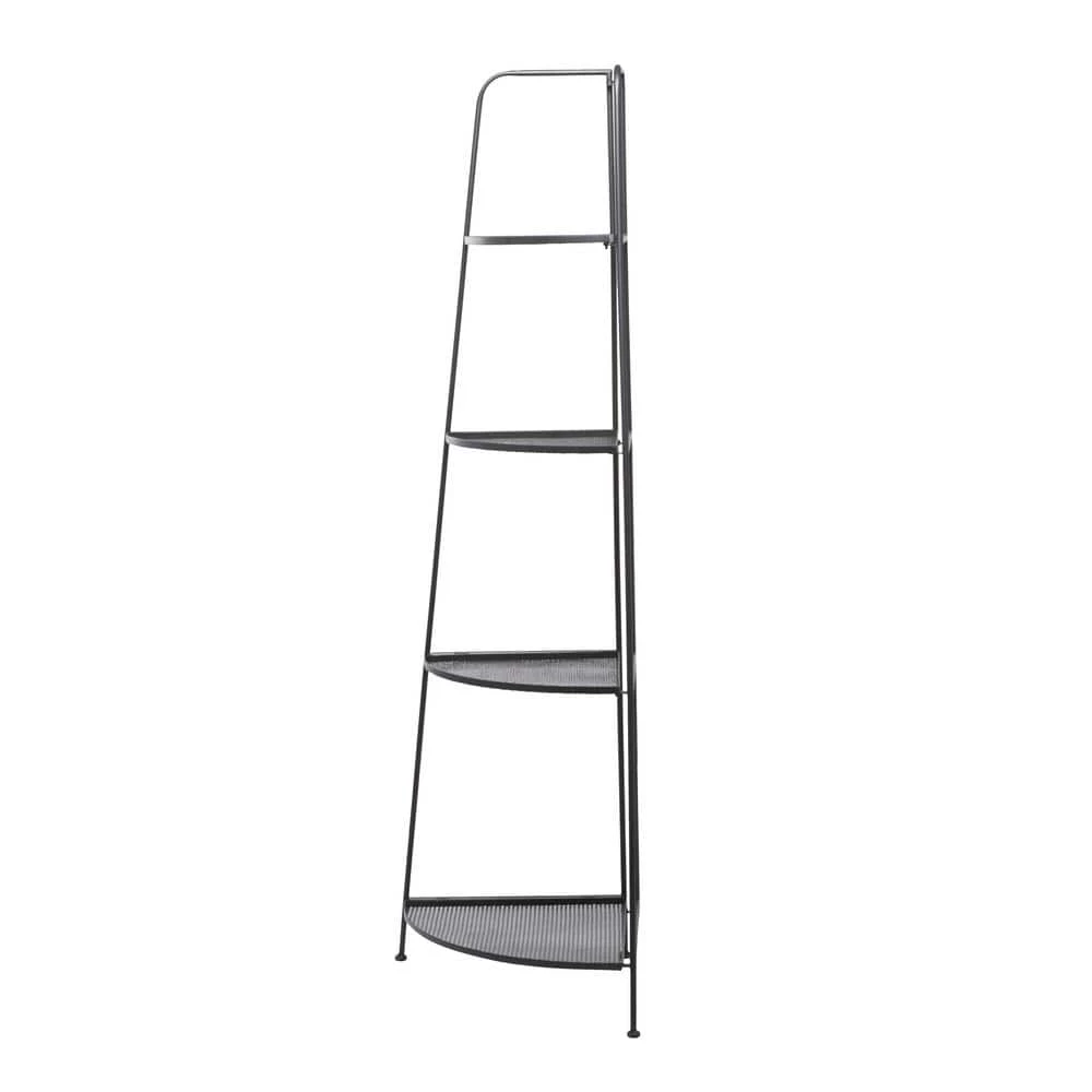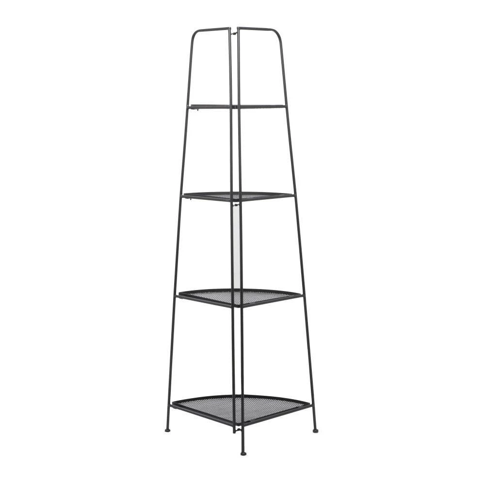 A storage piece that is spacious to keep your valuable organized and safe. Appreciate their design best against solid-colored backgrounds. Place this chic corner rack on your living room, garden, and the kitchen area for an all-around storage unit display. Designed with black rubber stoppers at the base that prevent scratching furniture and table tops, as well as sliding around. This item ships in 1 carton. Suitable for indoor and outdoor use. Maximum weight limit is 40 lbs.. This standing bakers rack features a 4-tier shelving unit. Contemporary style.