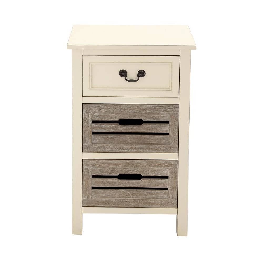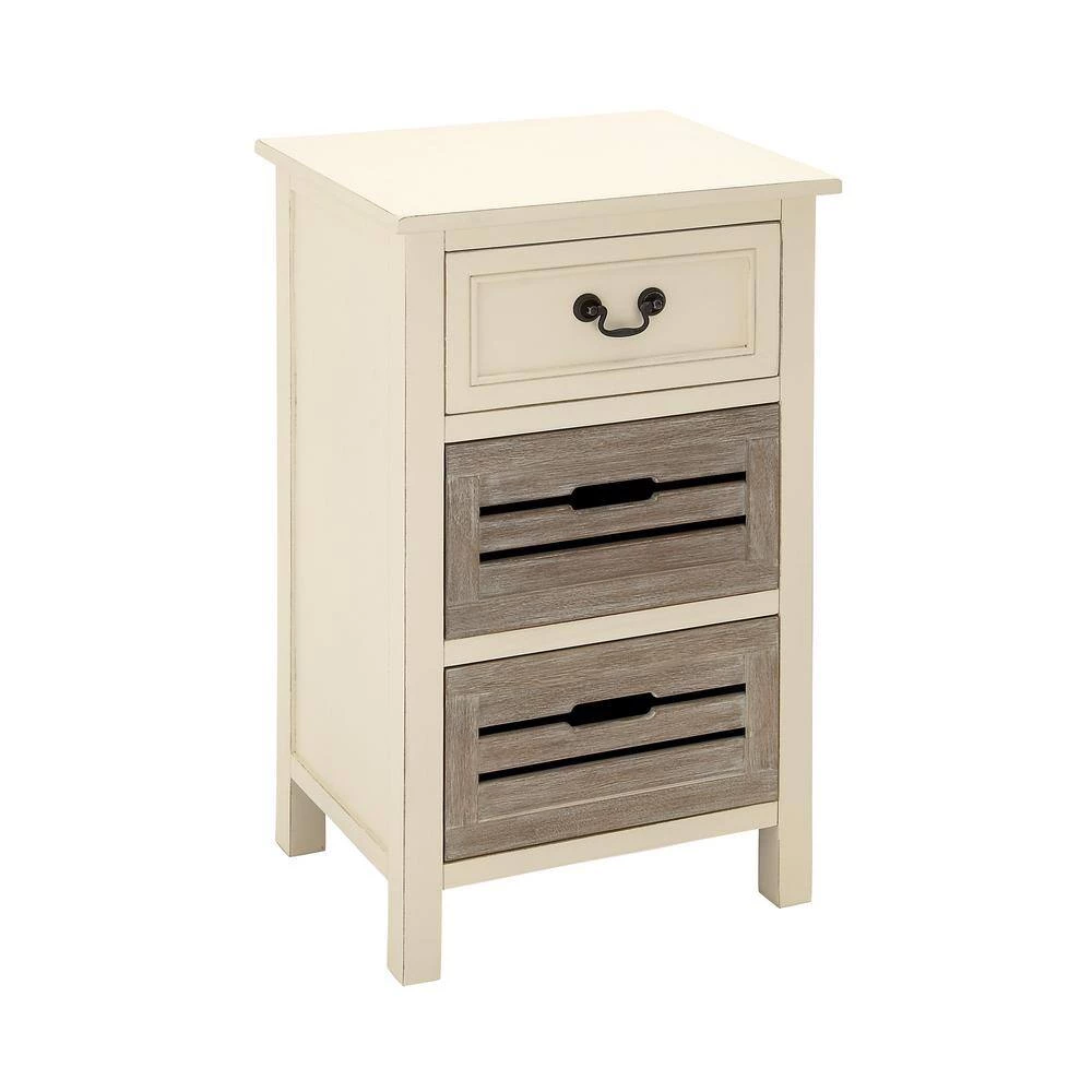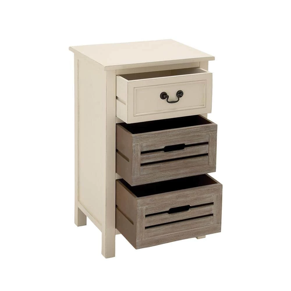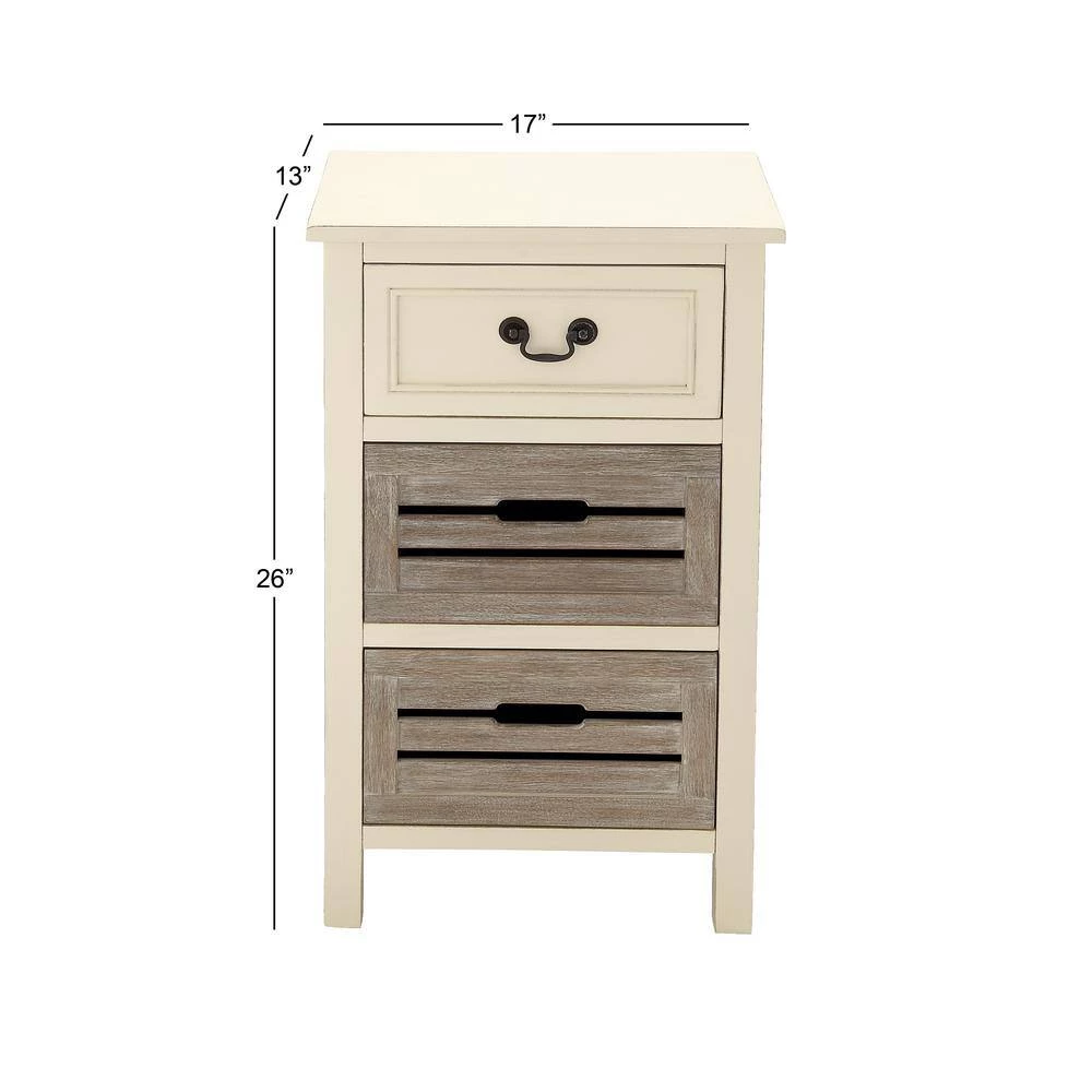 Surprise your guests with this stunning side table that serves both decorative and functional purposes. It is best to display in country-themed lobby, living room, reading room, or home office. Organizing isn’t boring when you have an amazing storage unit at your disposal. Filled with shoes, books, blankets and more, these storage units are a stylish and convenient way to store your belongings. Includes 2 wooden drawers that measure 12″L x 9″W x 6″H and 1 that measures 12″L x 9″W x 7″H. Suitable for indoor use only. Maximum weight limit is 100 lbs. Country Cottage style. This item comes with mounting hardware to prevent tipping.