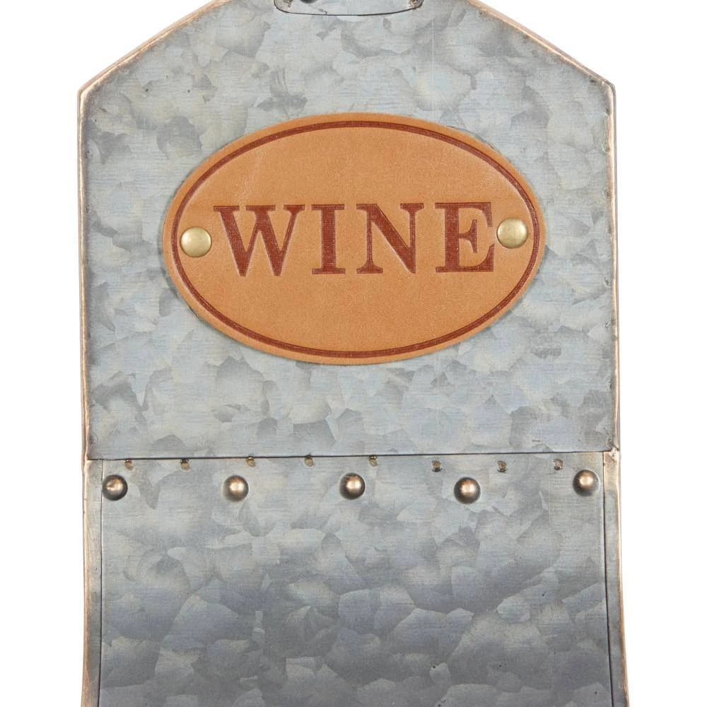 - This galvanized wall wine holder has a light tan colored WINE emblem on top and an overall gray finished body