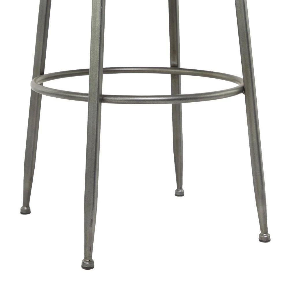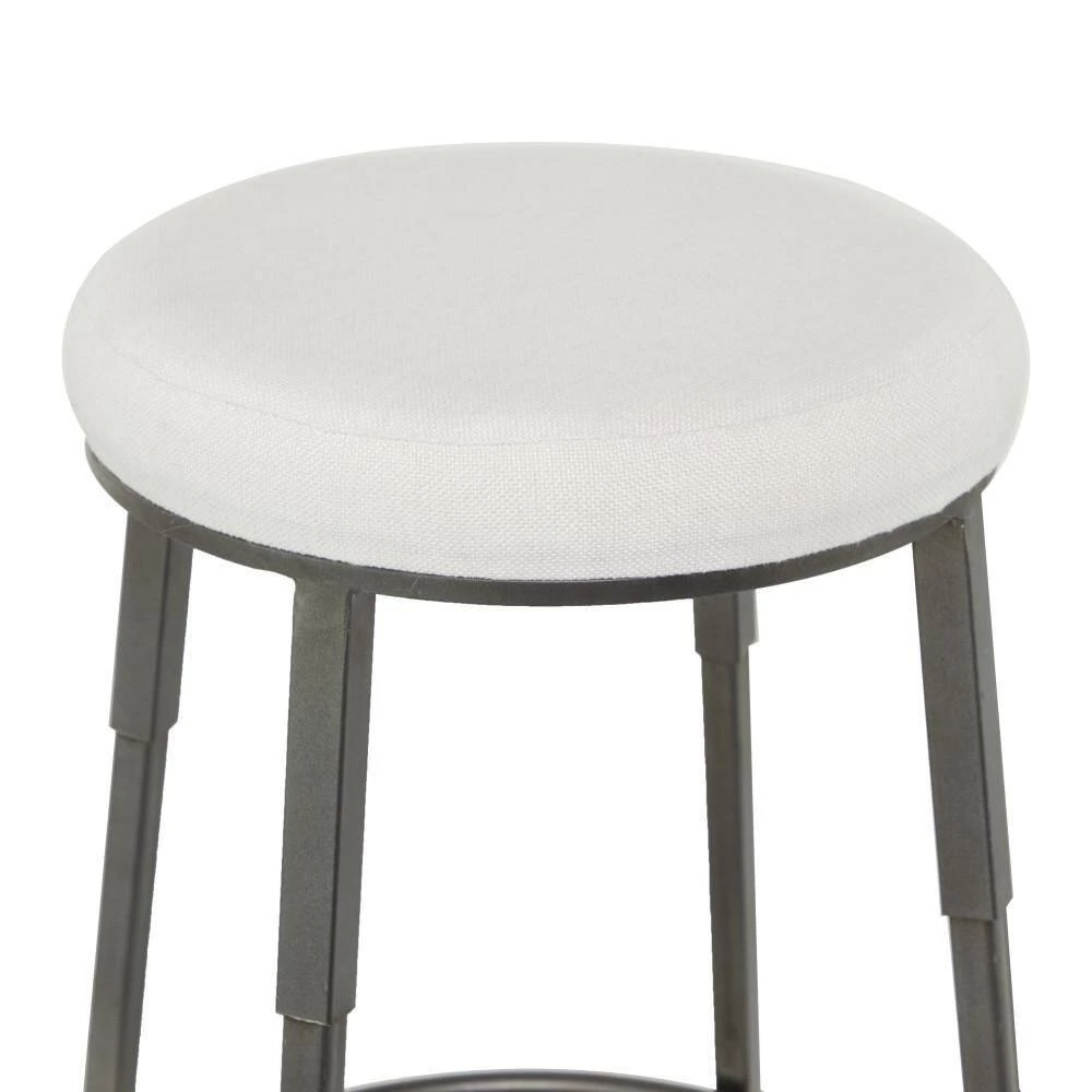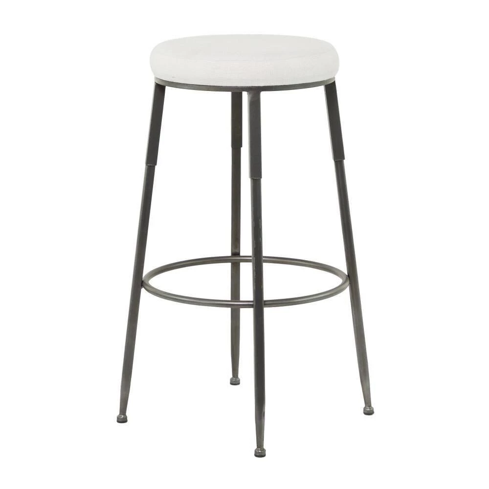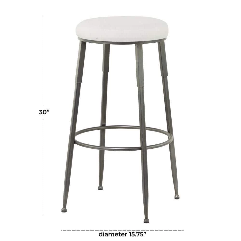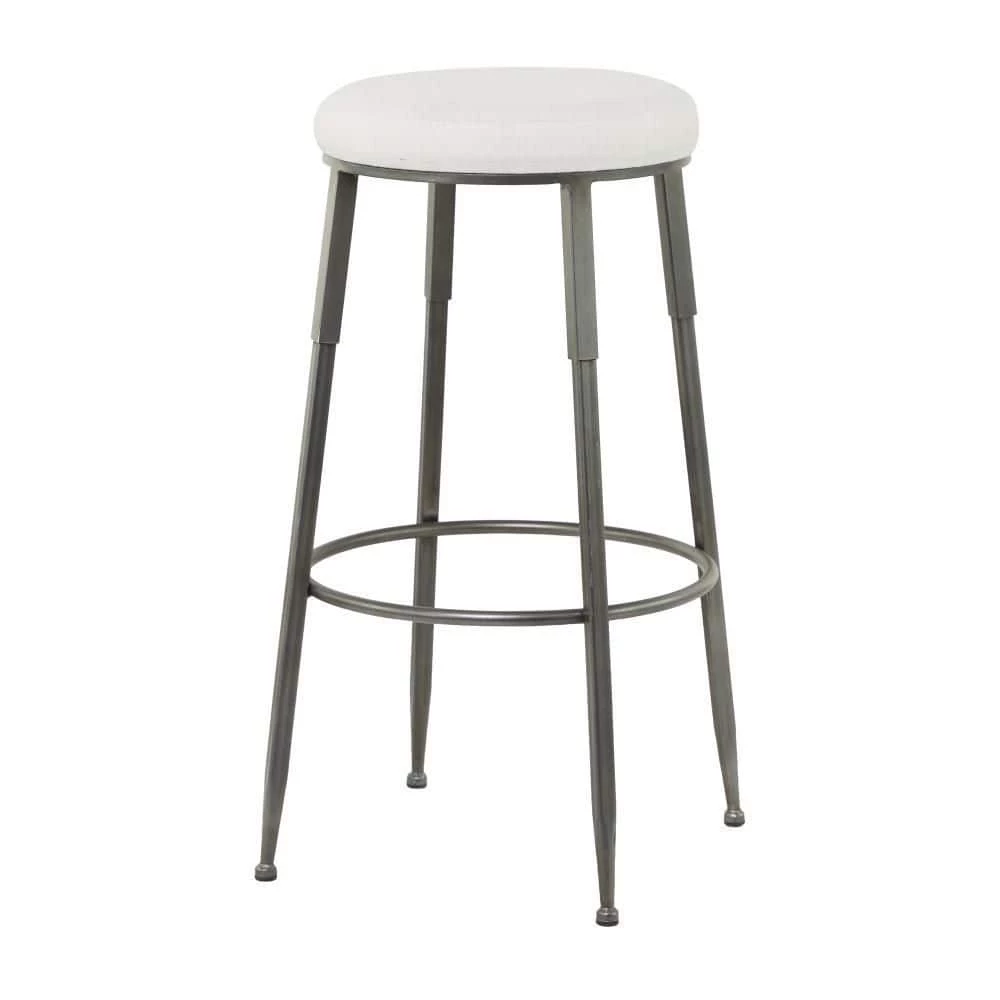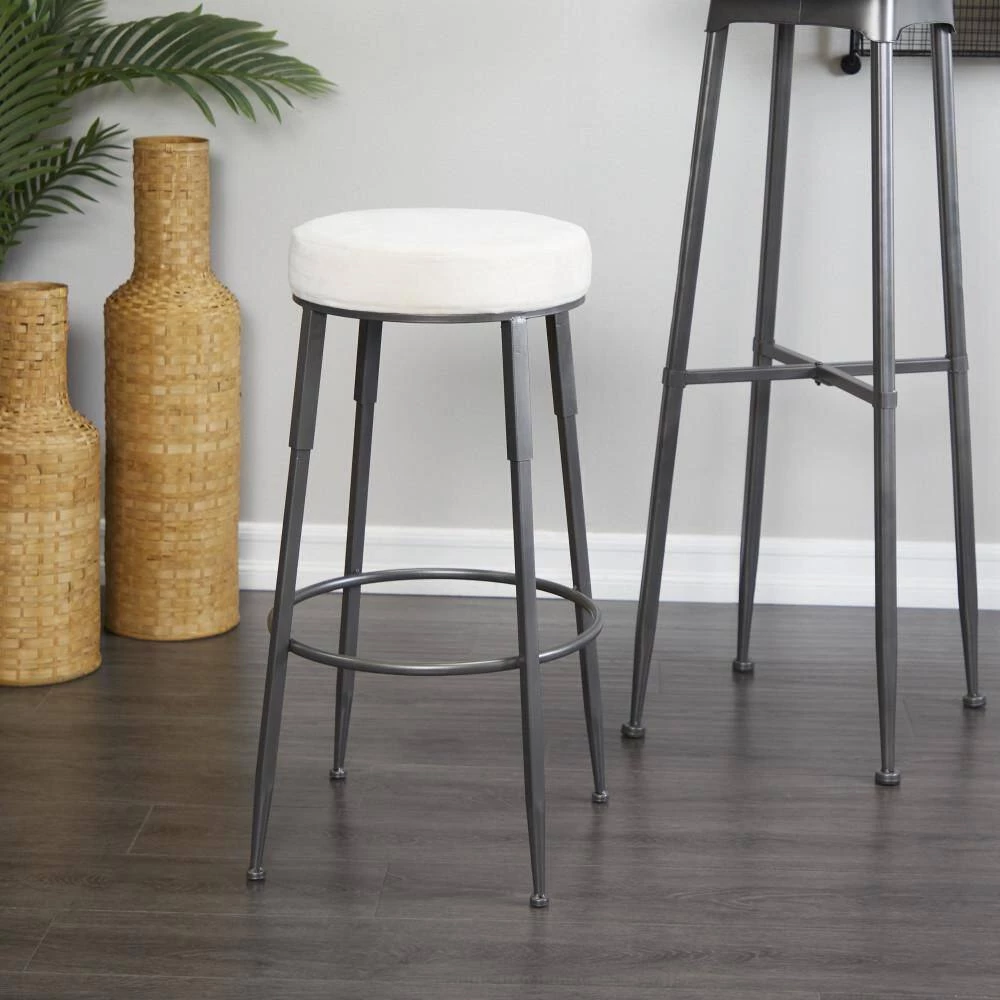 - Metallic gray finished legs and a soft white cushion seat highlights this tall metal stool features