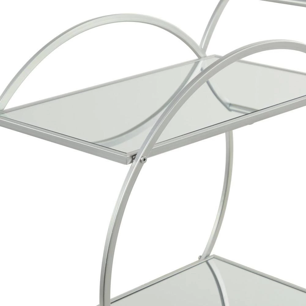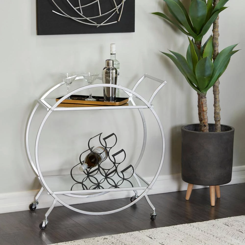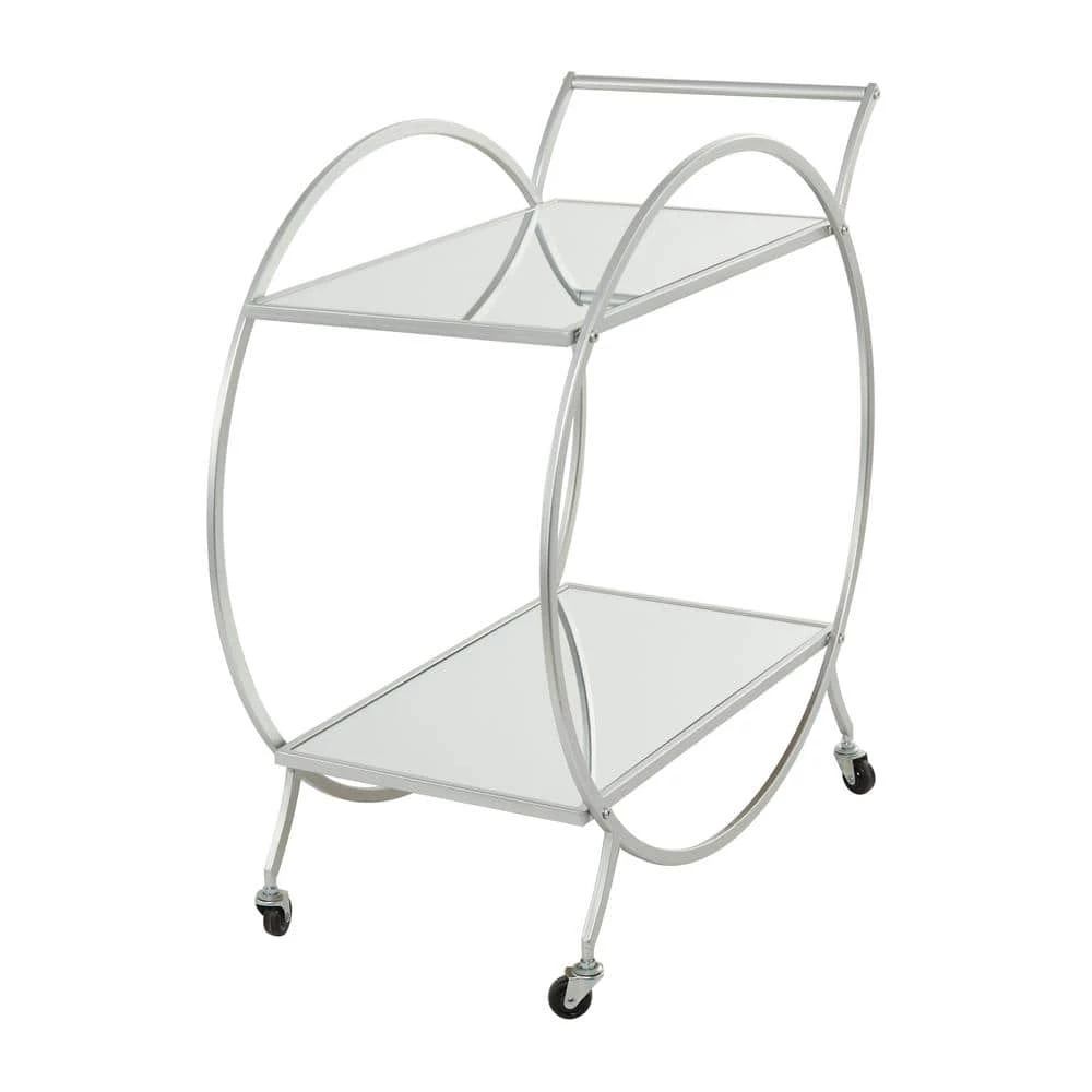 - This 2 tier bar cart comes in a silver finish that complements any contemporary interior design
