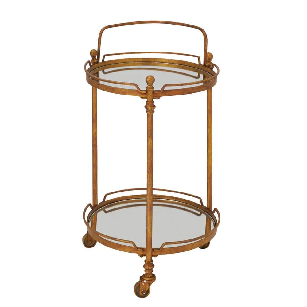 - A traditional brass bar cart crafted of sturdy and quality iron and glass