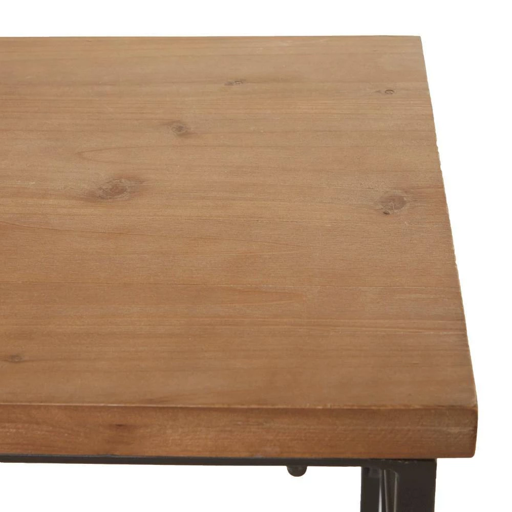 - A rectangular console table crafted of sturdy metal and natural fir wood materials