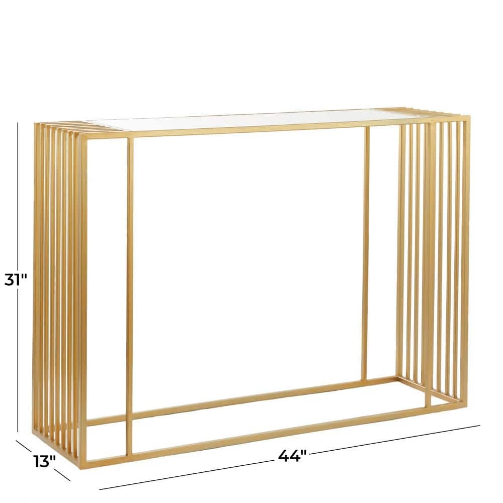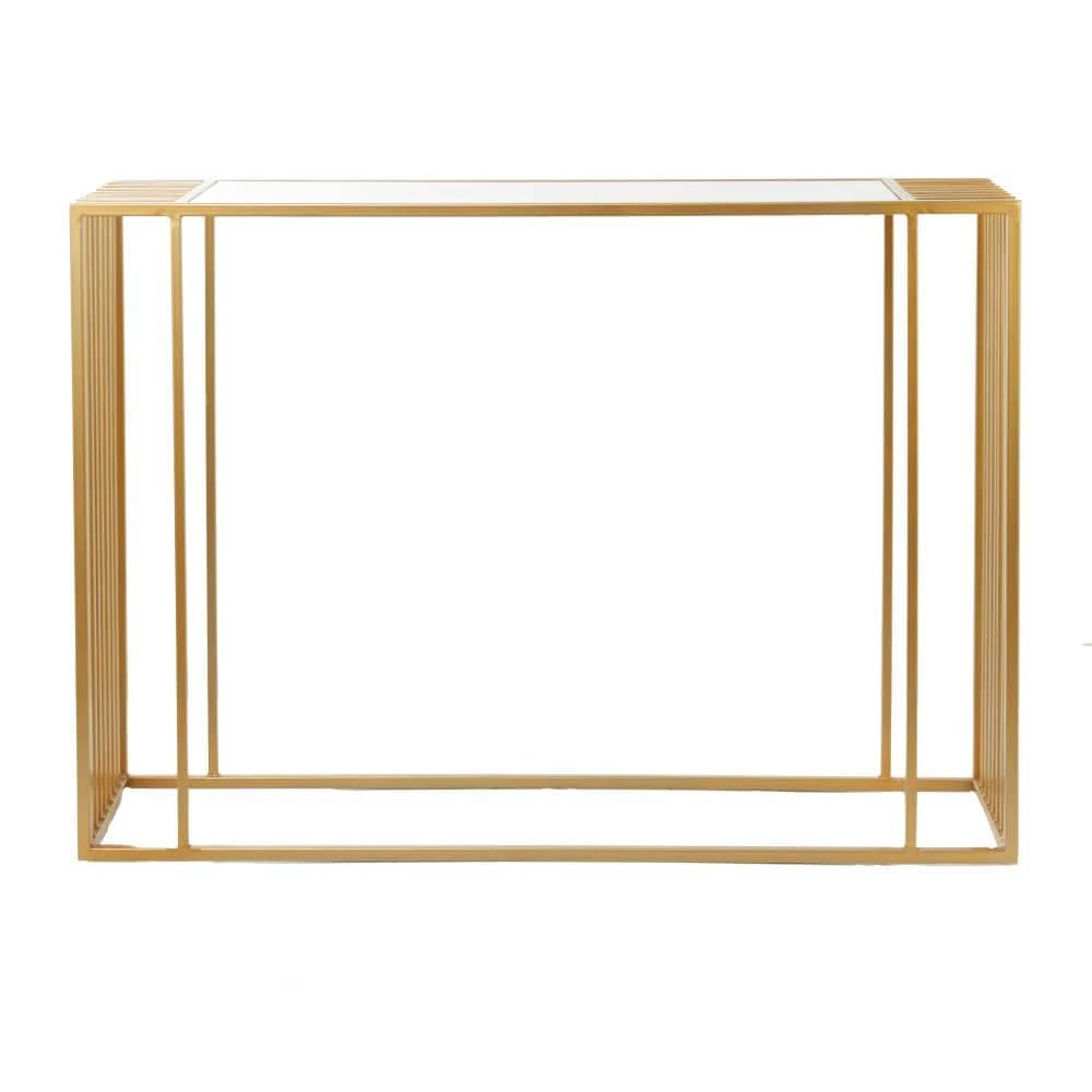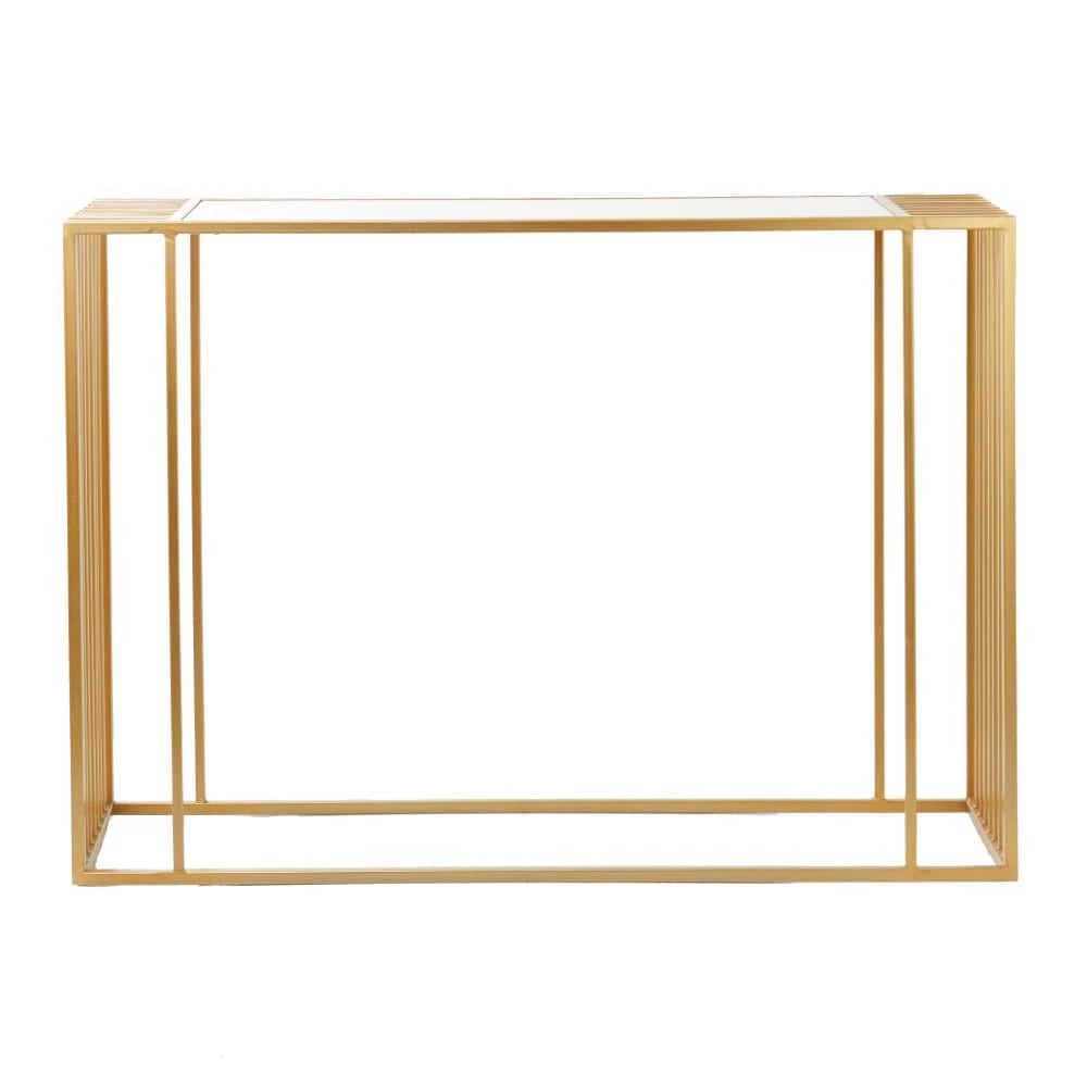 Bring a finishing touch to your home with an inviting appeal with this console table. A sturdy and long lasting construction for a years of enjoyment. Introduce a new element into any room with this gold accent table that can add the right dose of elegance to your interior. This item ships in 1 carton. Suitable for indoor use only. Maximum weight limit is 100 lbs.. This item has 1 shelf. Contemporary Theme.