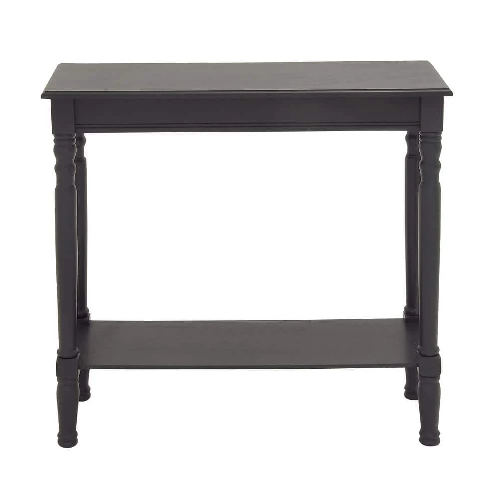 Bring a finishing touch to your home with an inviting appeal with this console table. A sturdy and long lasting construction for a years of enjoyment. Decorate this black console table in your entryway under a round wooden mirror and stoneware table lamp for a classic look. This item ships in 1 carton. Features a rectangular table top with beveled edges. Suitable for indoor use only. Some assembly required. Maximum weight limit for shelf is 30 lbs.. One bottom shelf. Traditional theme.