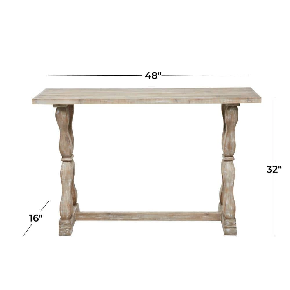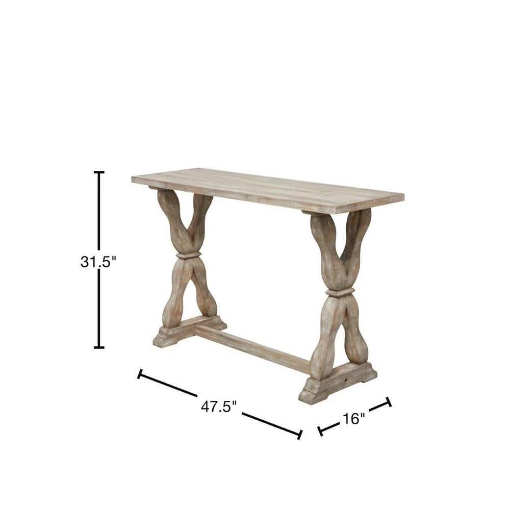 Bring a finishing touch to your home with an inviting appeal with this console table. A sturdy and long lasting construction for a years of enjoyment. Decorate your home spaces with a fresh seat coverage or display surfaces with this charming wooden bench to complete your classic interior design. This item ships in 1 carton. Suitable for indoor use only. Maximum weight limit is 100 lbs.. Farmhouse design.