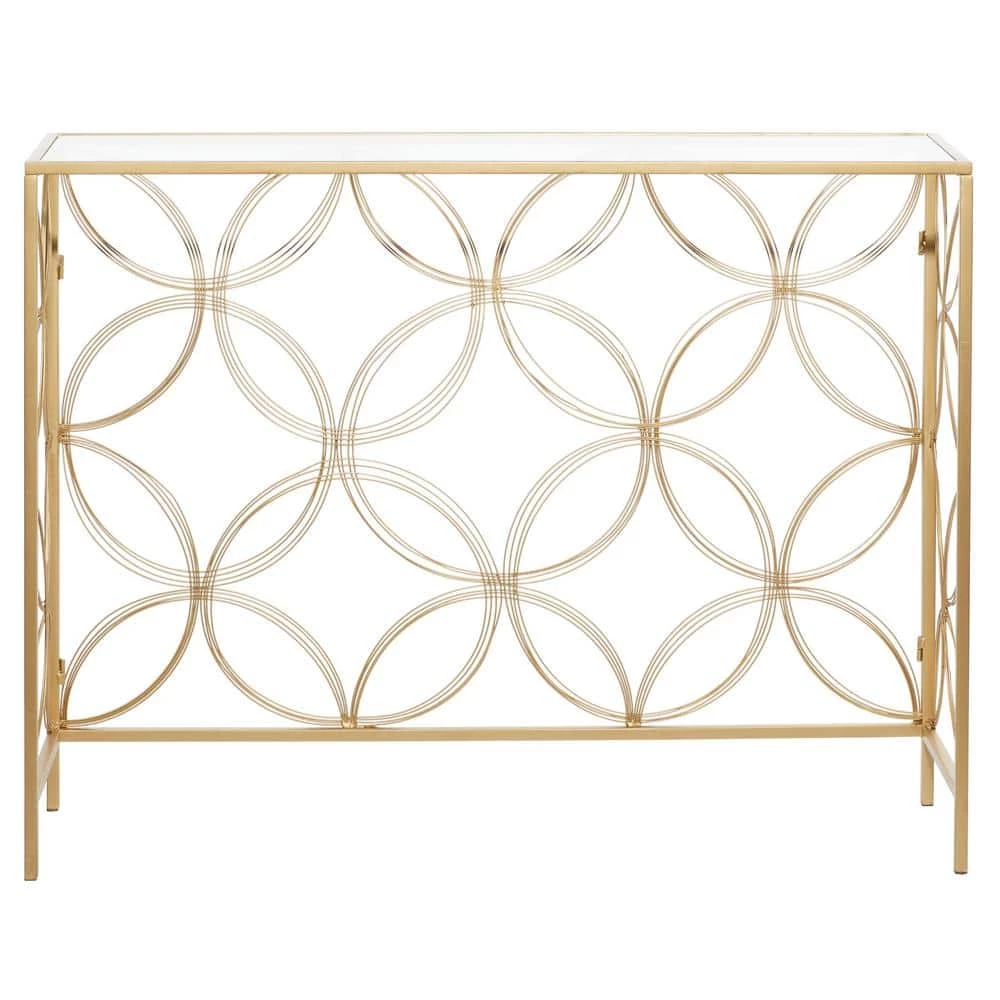 - Featuring a gold circles overlay metal design, spacious top with slender structure that will glam up any space