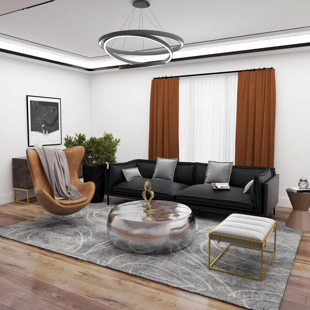 - A contemporary style offers neutral elements and basic forms with a bold design