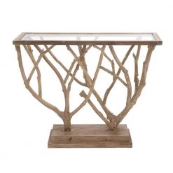 Bring a finishing touch to your home with an inviting appeal with this console table. A sturdy and long lasting construction for a years of enjoyment. Display as console table in your boho, country, coastal, or farmhouse-themed home space. This item ships in 1 carton. Due to the handmade nature of this item, no two will be alike, there will be slight differences in shape, size, and color. Suitable for indoor use only. Due to the live edges of the piece, each is unique, so no two products will have an identical pattern, shade, or cut. Maximum weight limit is 50 lbs.. Contemporary design.