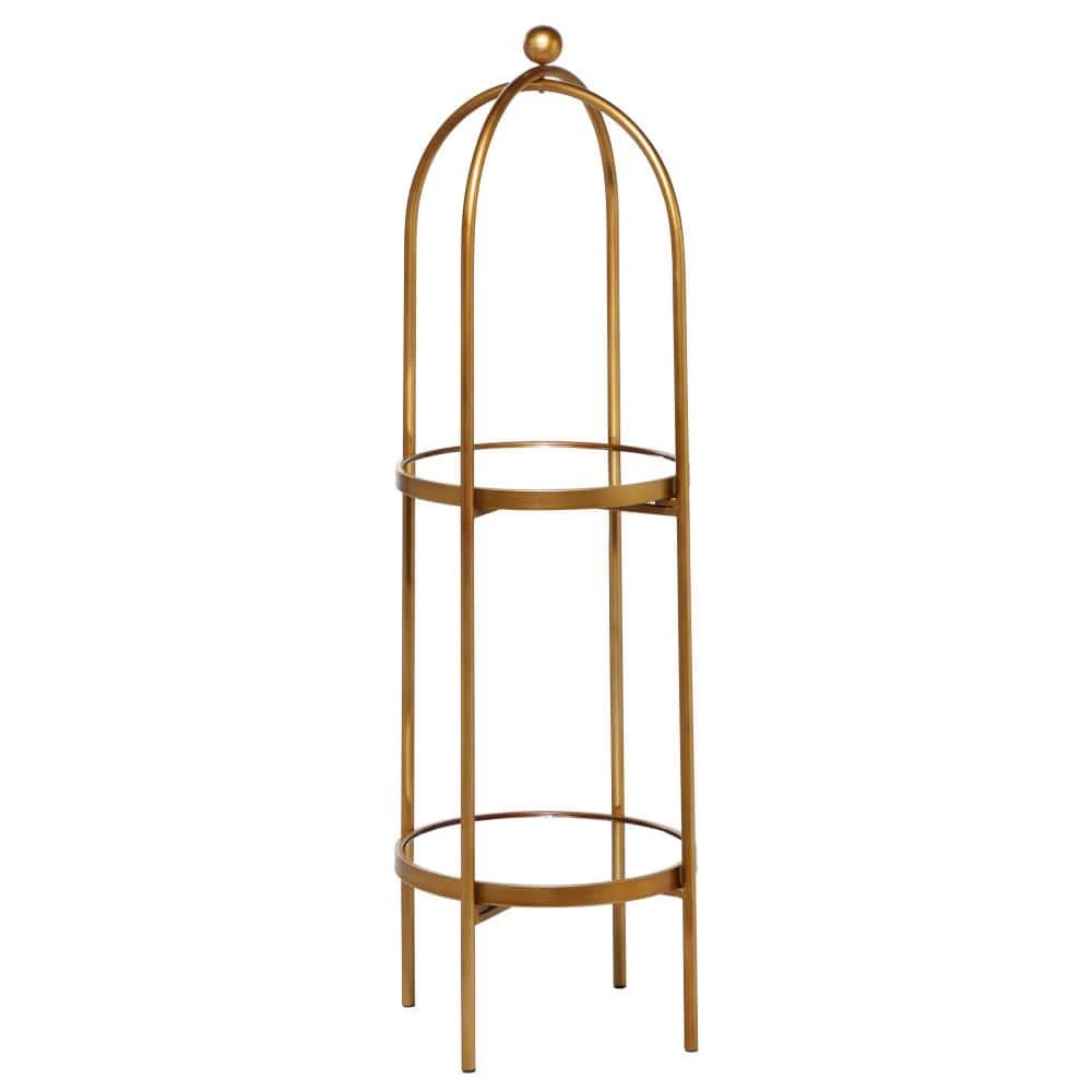 - This tall tiered shelving are constructed of welded metal frame and securely attached mirror shelves