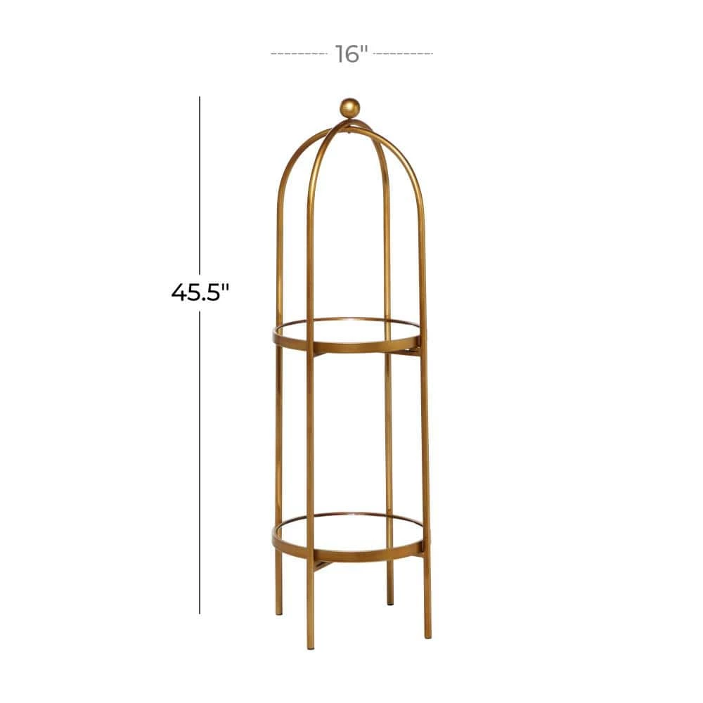 - This tall shelving unit has features a slender caged inspired structure with round shelves and round ball accent at the top
